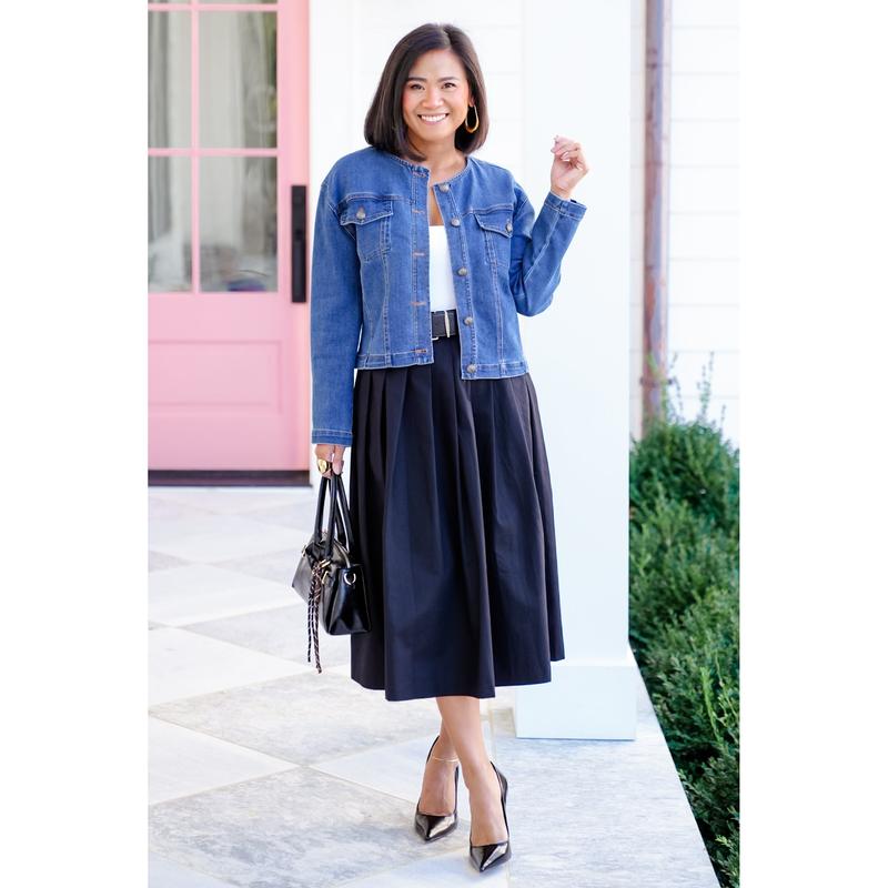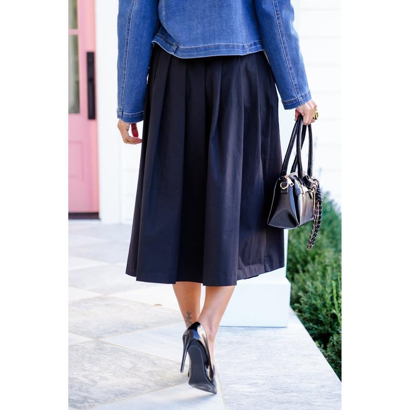 Elegant, sophisticated, and full of grace, this pleated midi skirt is the definition of chic versatility. The structured pleats hold their shape beautifully, creating that refined swish with every step. Perfect for work, events, or a dressy night out, it transitions seamlessly from day to evening. Pair it with a fitted blouse, cropped cardigan, or tailored jacket for an instantly polished look.