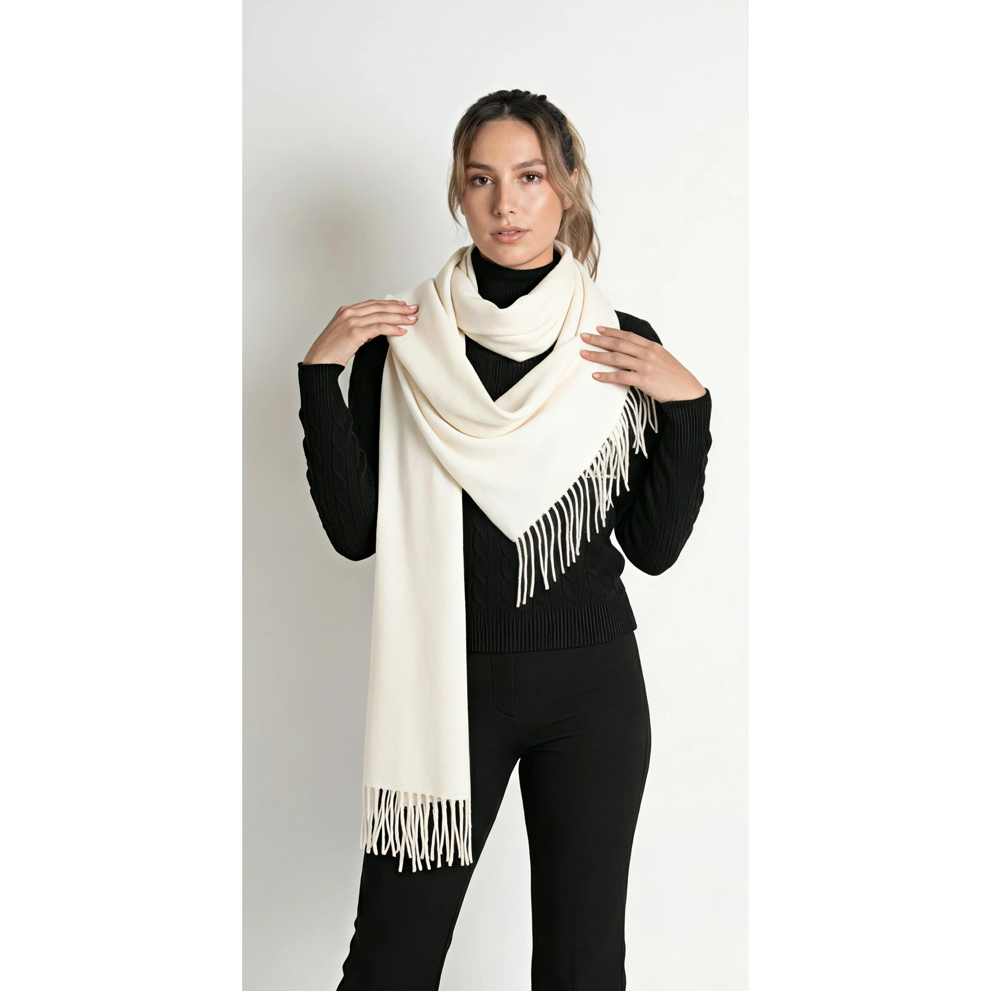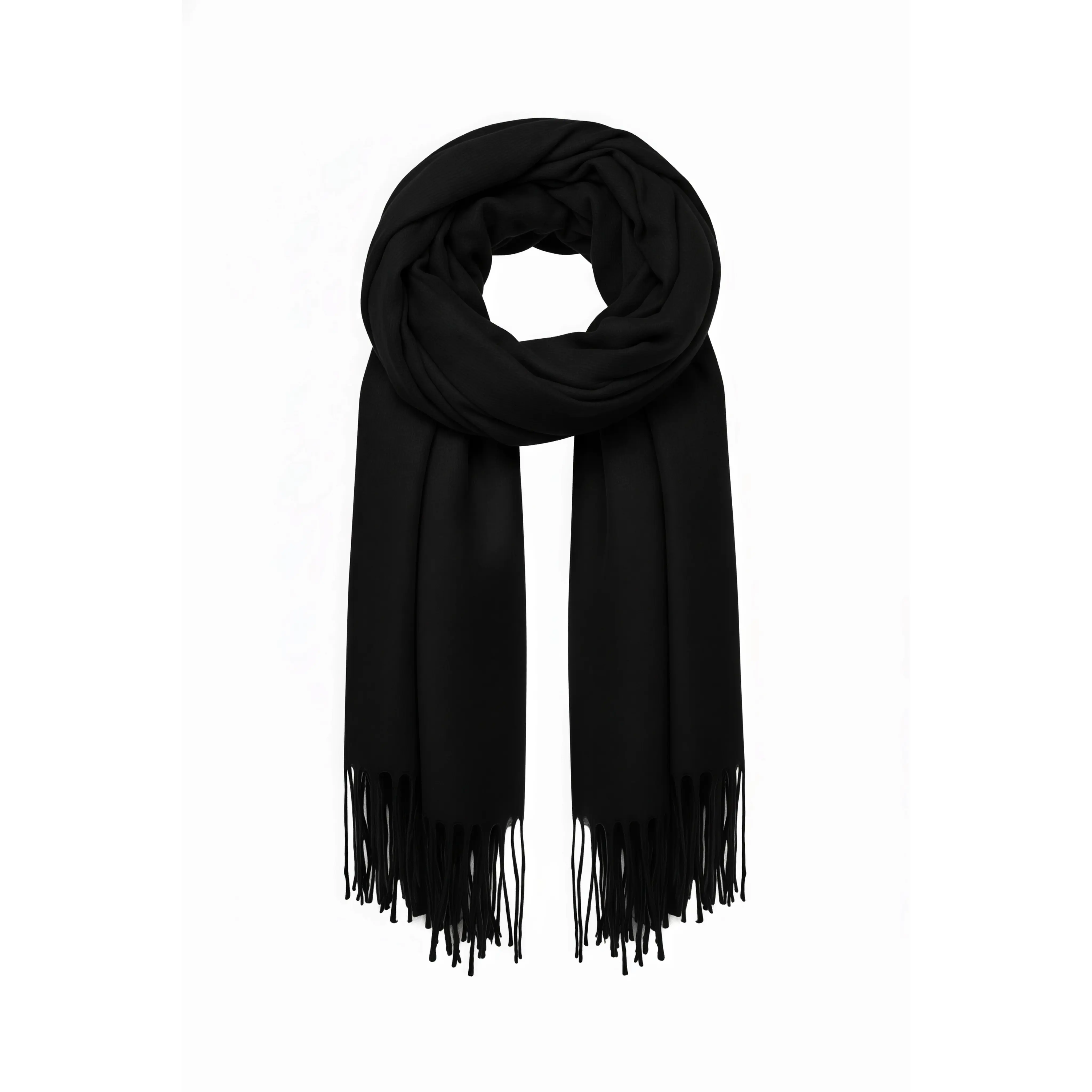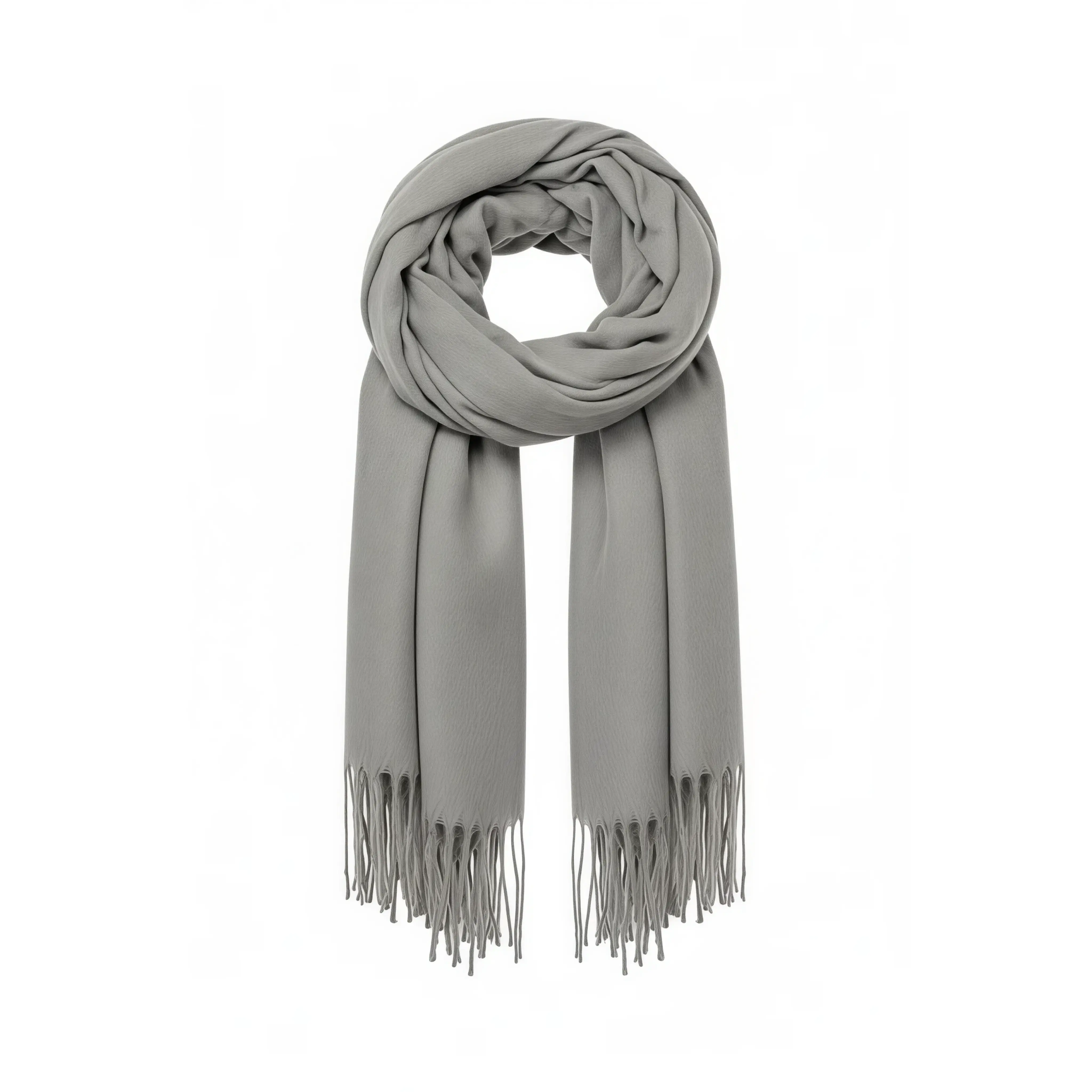 Crafted from 100% polyester or a soft acrylic-polyester blend, this scarf offers a cozy feel that complements cooler days. Its rectangular design features a woven or lightly brushed finish, along with delicate fringes at the ends for added texture and style.