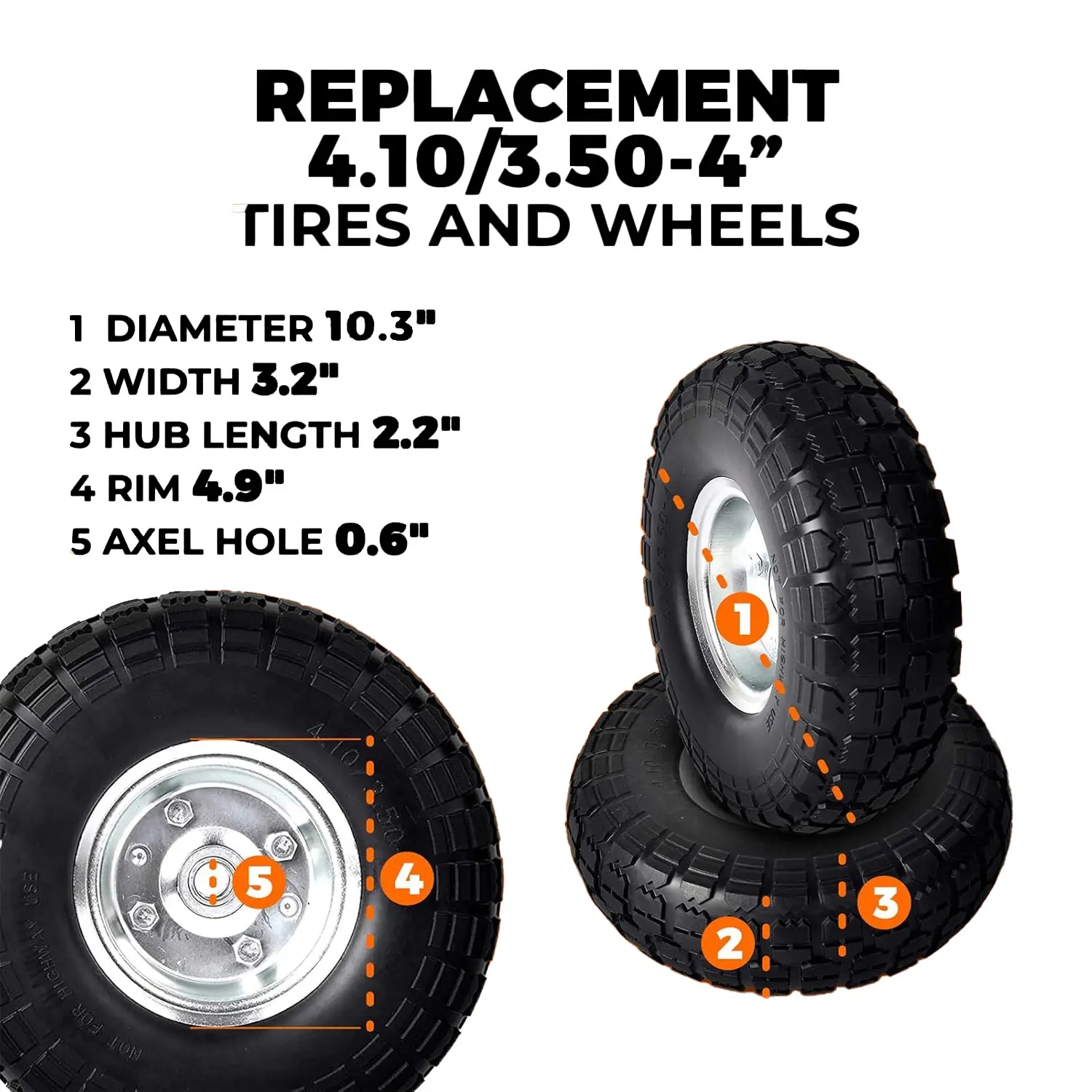 Solid PU Run-Flat Tire Wheel, 2-Pack, 450 lbs Static Load, Flat Free Tubeless Tires and Wheels for Hand Truck, Utility Cart, Dollies, Garden Trailers, Various Carts