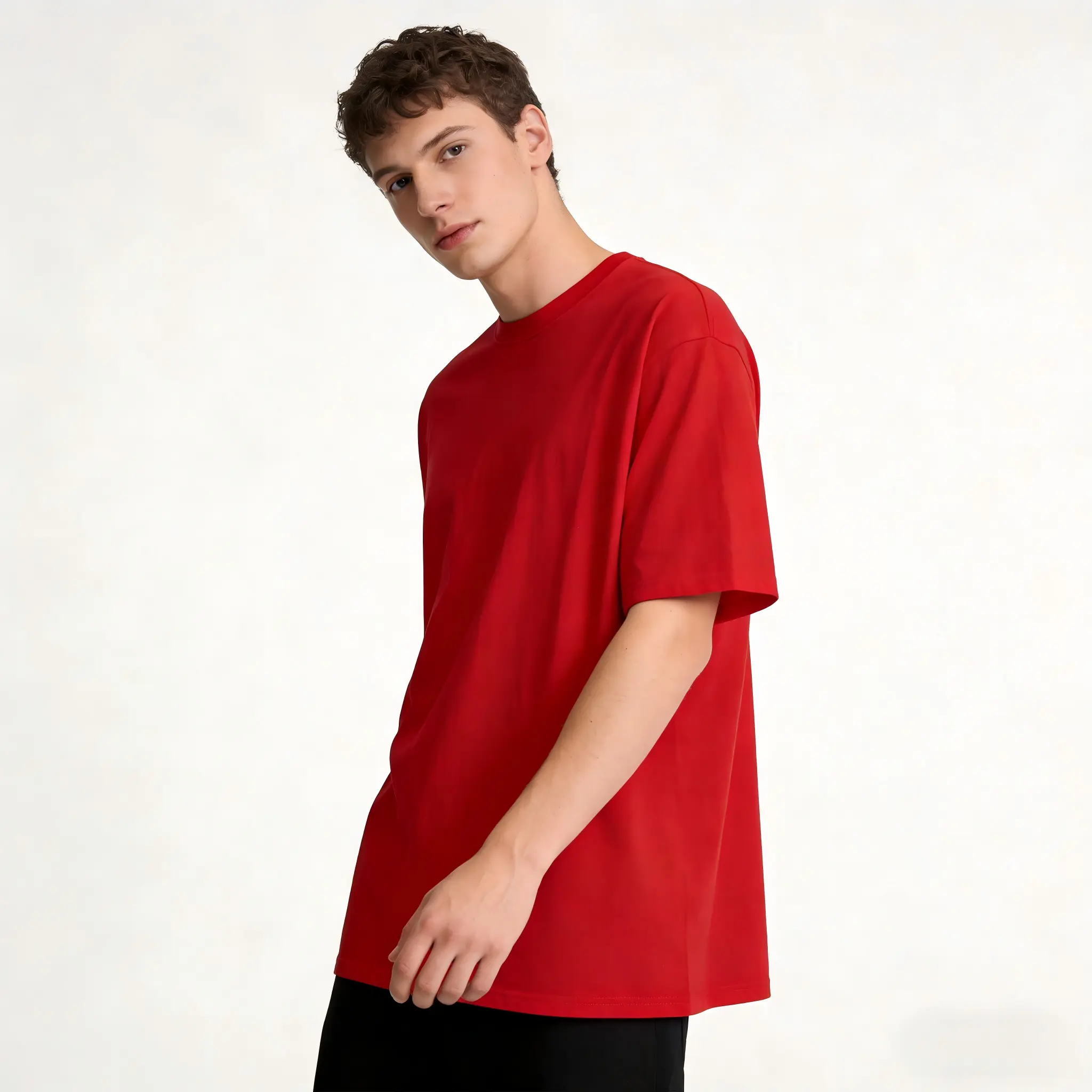 Solid Red Oversized 100% Cotton Plain T-Shirt – Heavyweight Loose-Fit Essential Tee for DIY, Streetwear & Everyday Casual Outfits