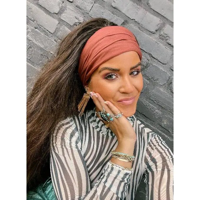 These stretchy wraps are a solid rust color, and have multiple uses like ponytail holders, headbands, wear as gaiters or handkerchiefs around neck, ankle bracelets and so many more! You'll love how they are lightweight, soft and extremely stretchy while holding in place. Stock up on all of our patterns so you don't find yourself somewhere without one!