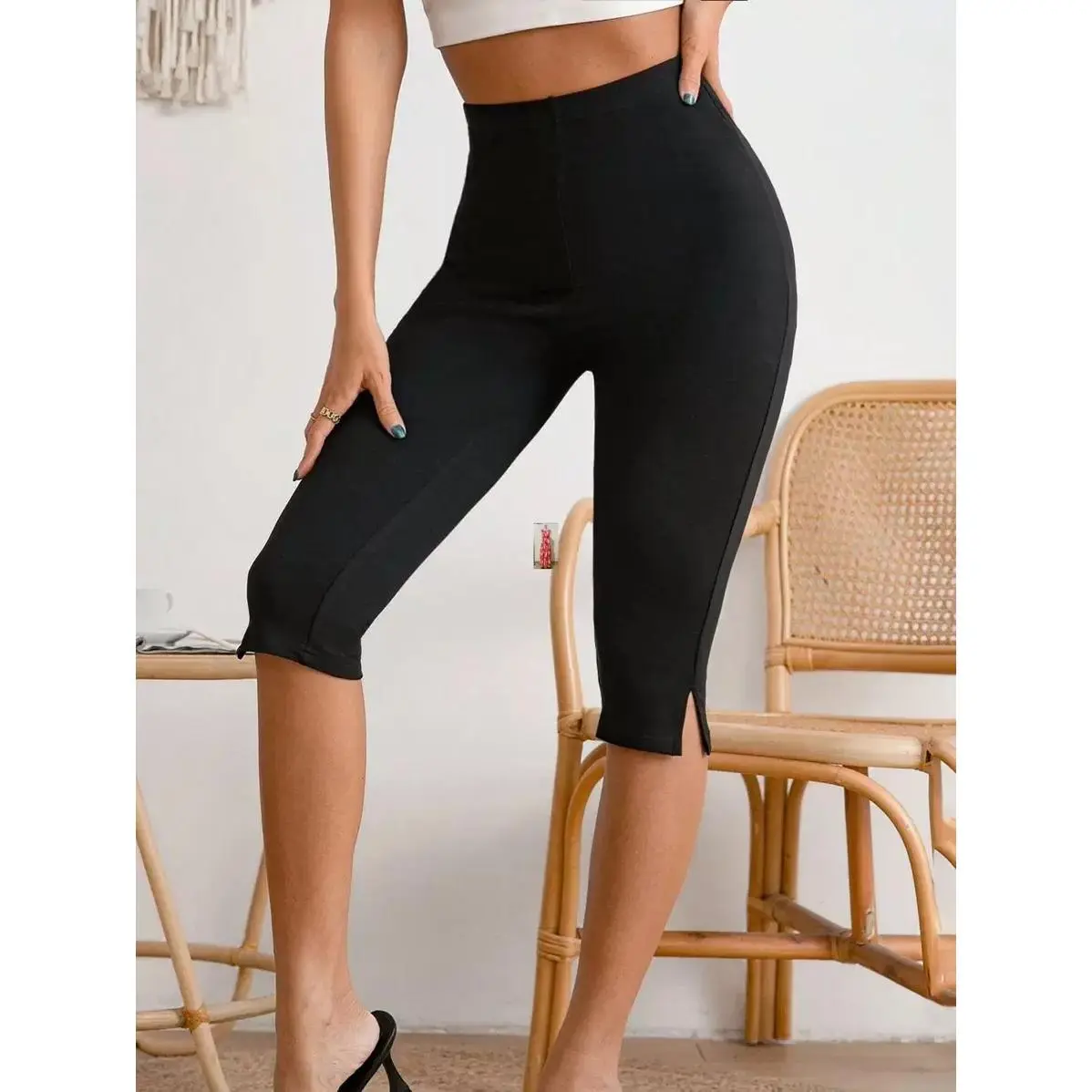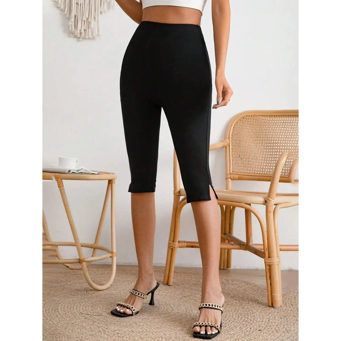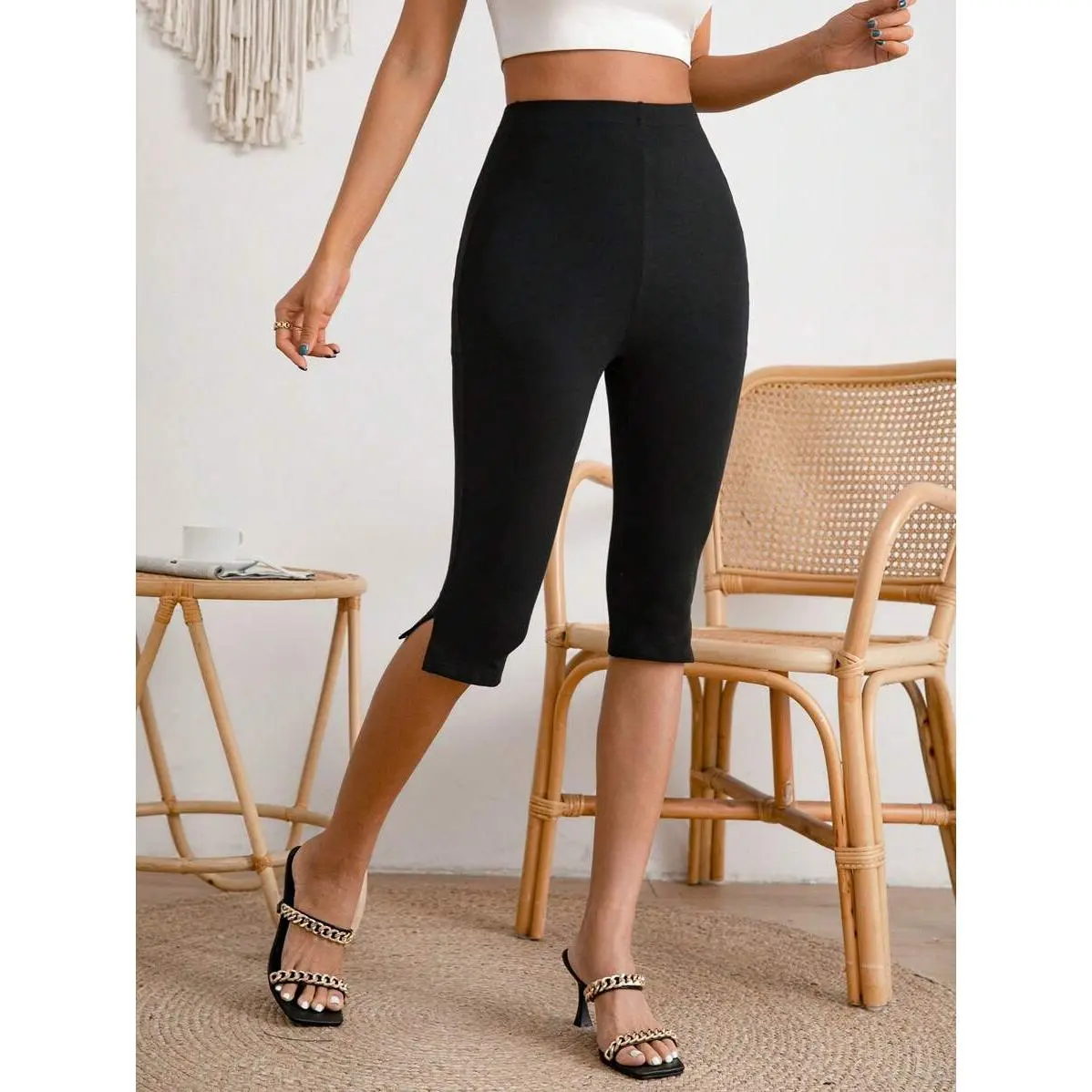 Solid Split Hem Capris Leggings outlaw color wide leg wide leg