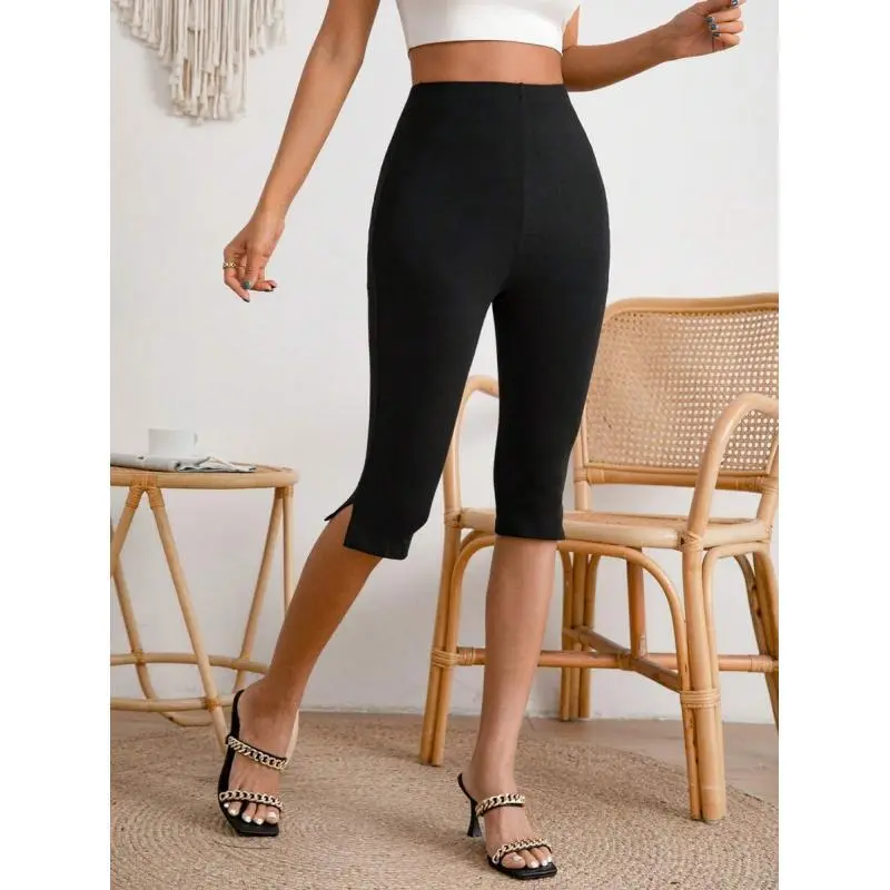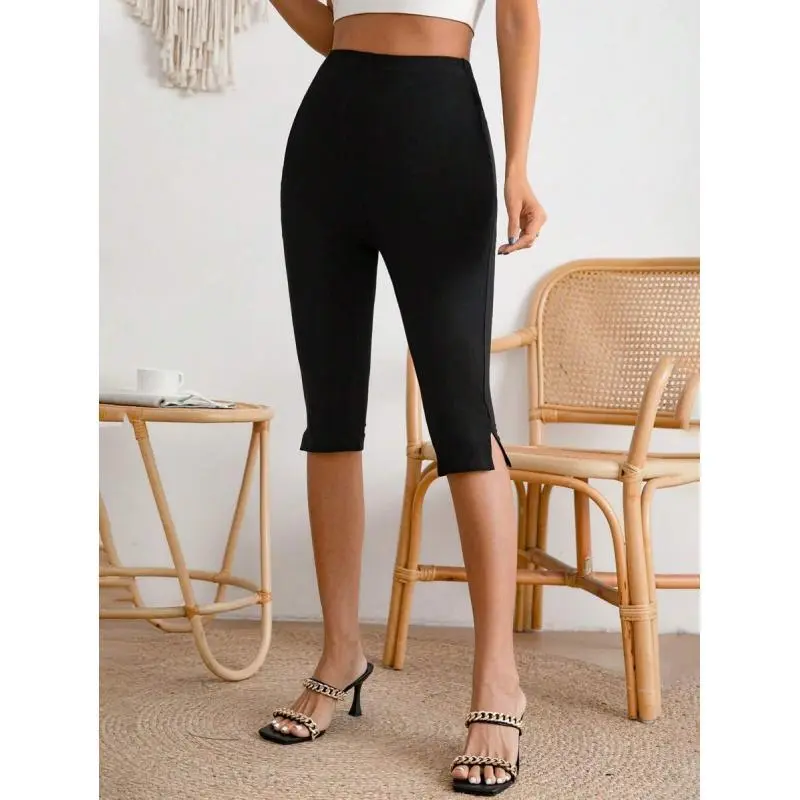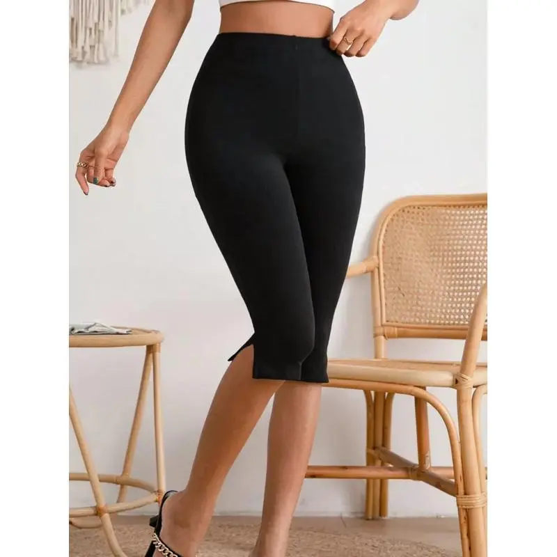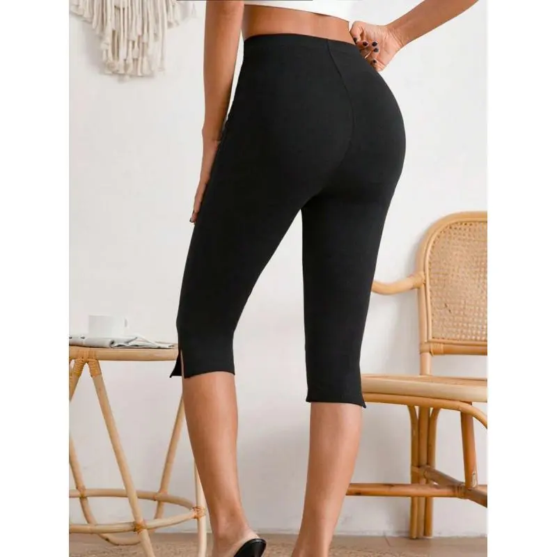 Solid Split Hem Capris Leggings Solid Split Hem Capris Leggings