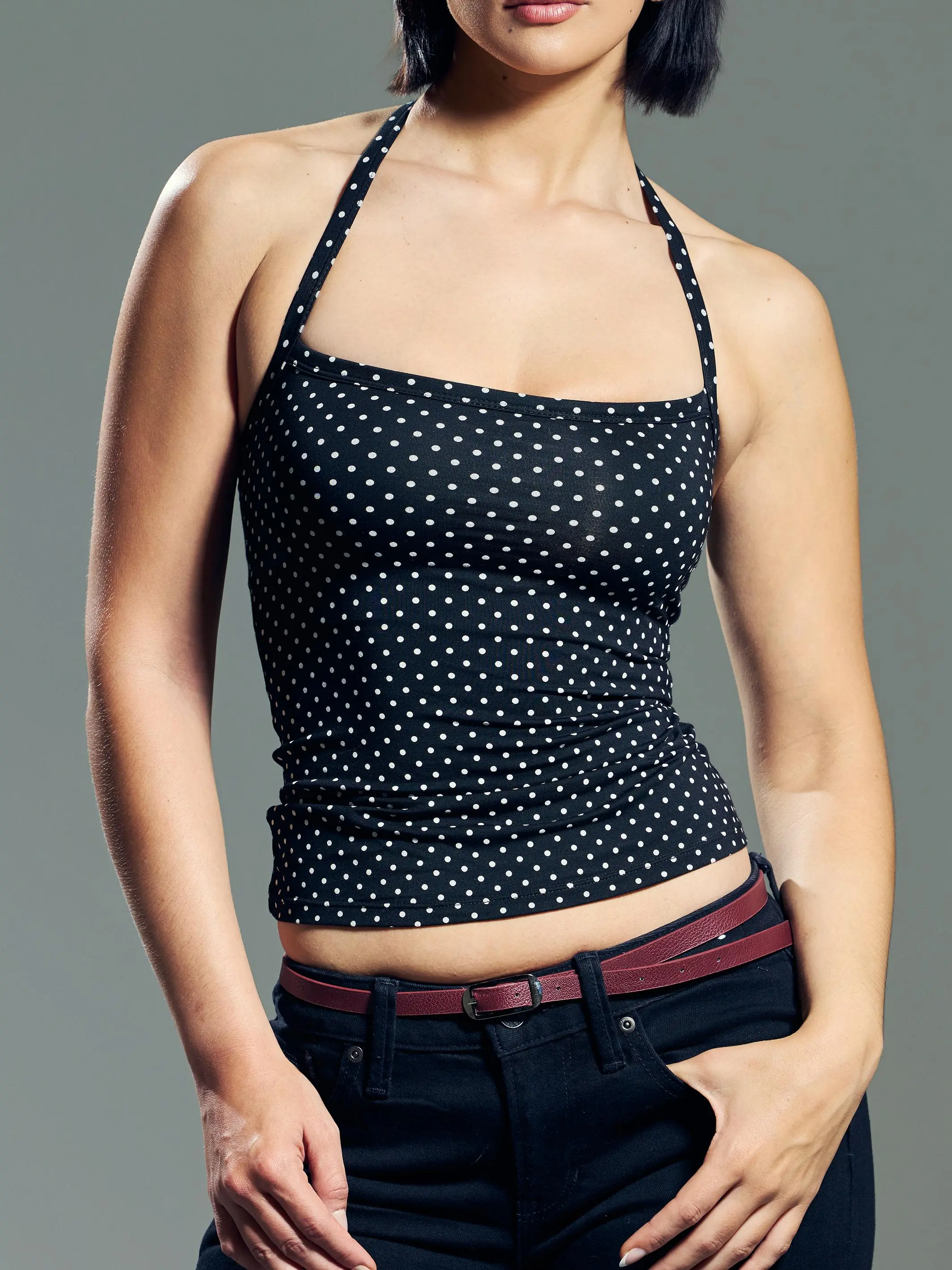This is the BEST top Klassy has come out with! The fabric is high quality, the style is comfortable for larger-chested girlies, & the print is so unique. Polka dots are the print of summer 2025. Thanks Klassy 🍒