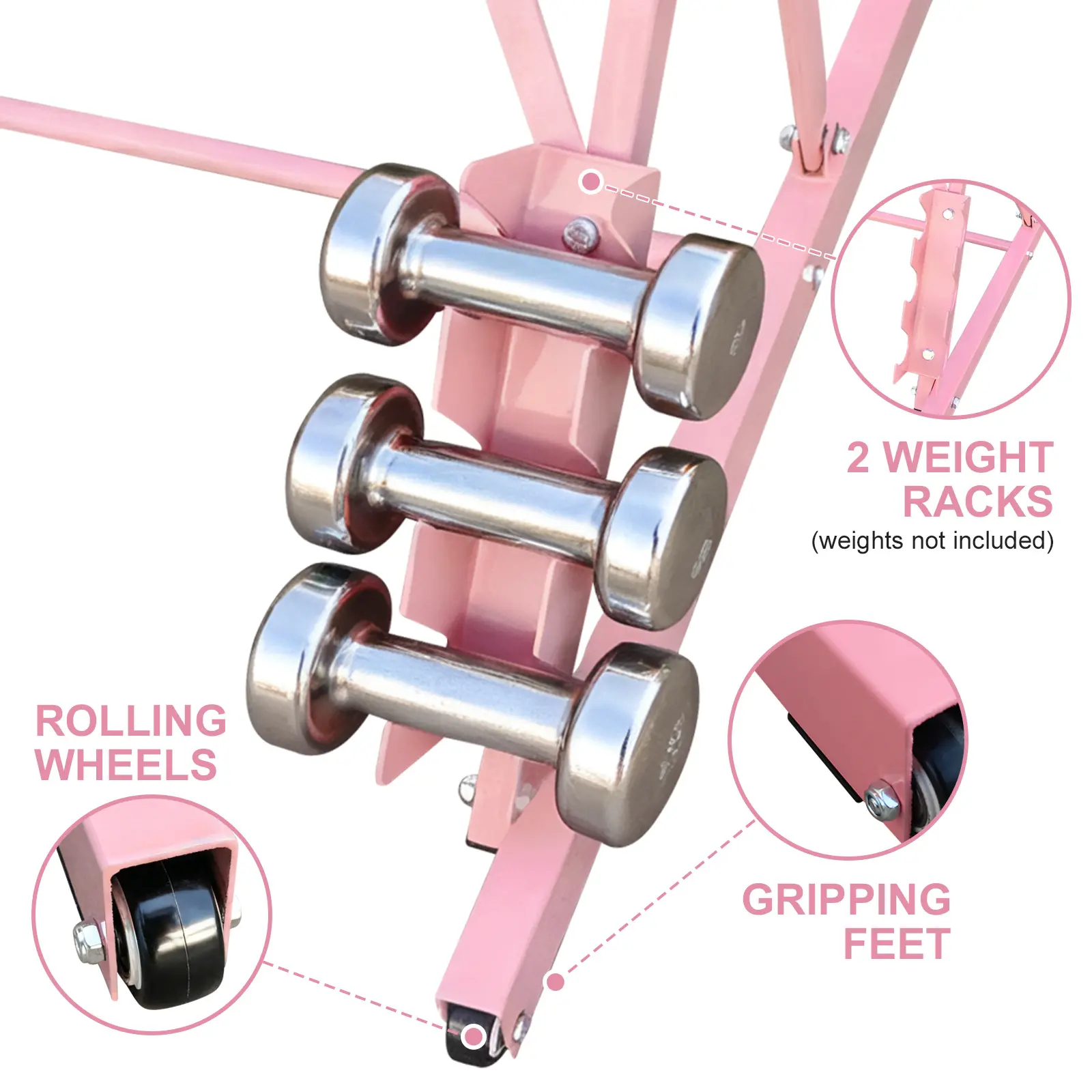 Supports four height adjustments from 32 to 38 inches, easily adjustable with a rotating knob, no tools required. From children to adults, users of different heights can find the most comfortable training height, meeting various practice needs for the whole family, including ballet, Pilates, and stretching.