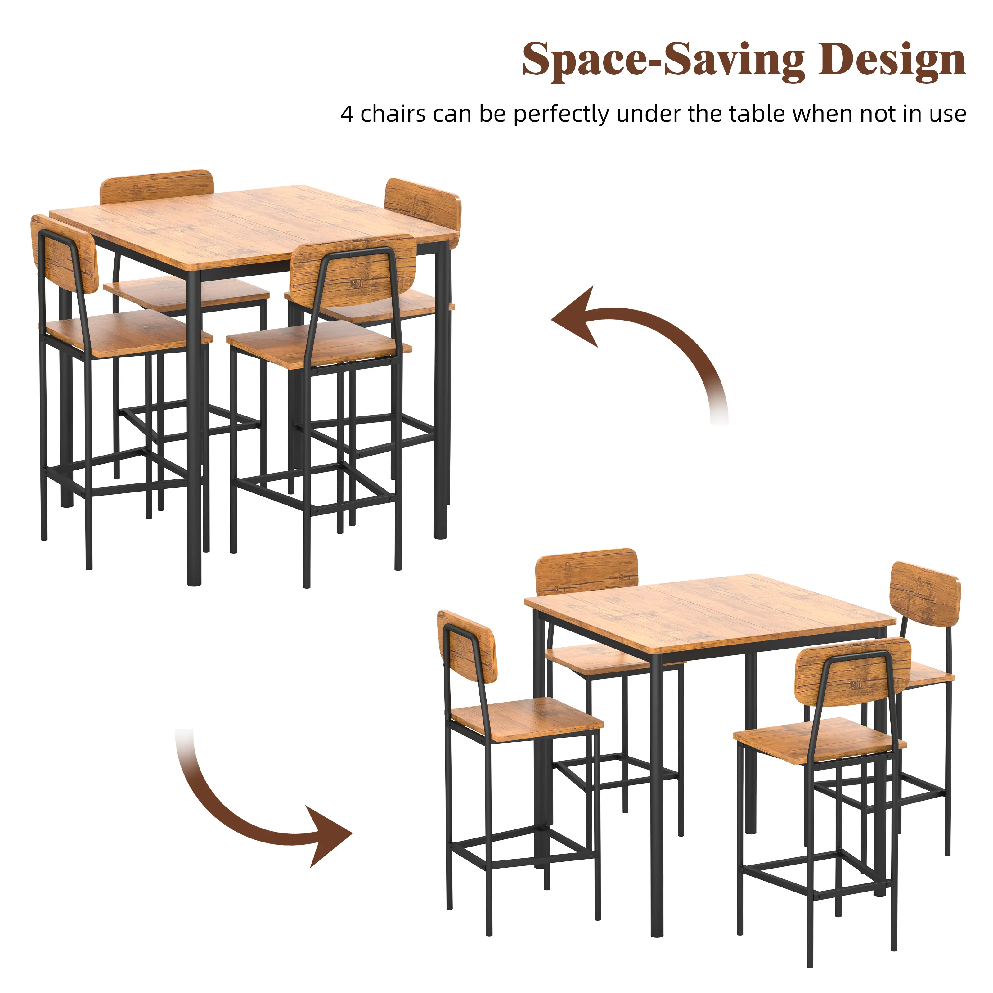 When not in use, four chairs can be easily stored under the table, which greatly saves space.
