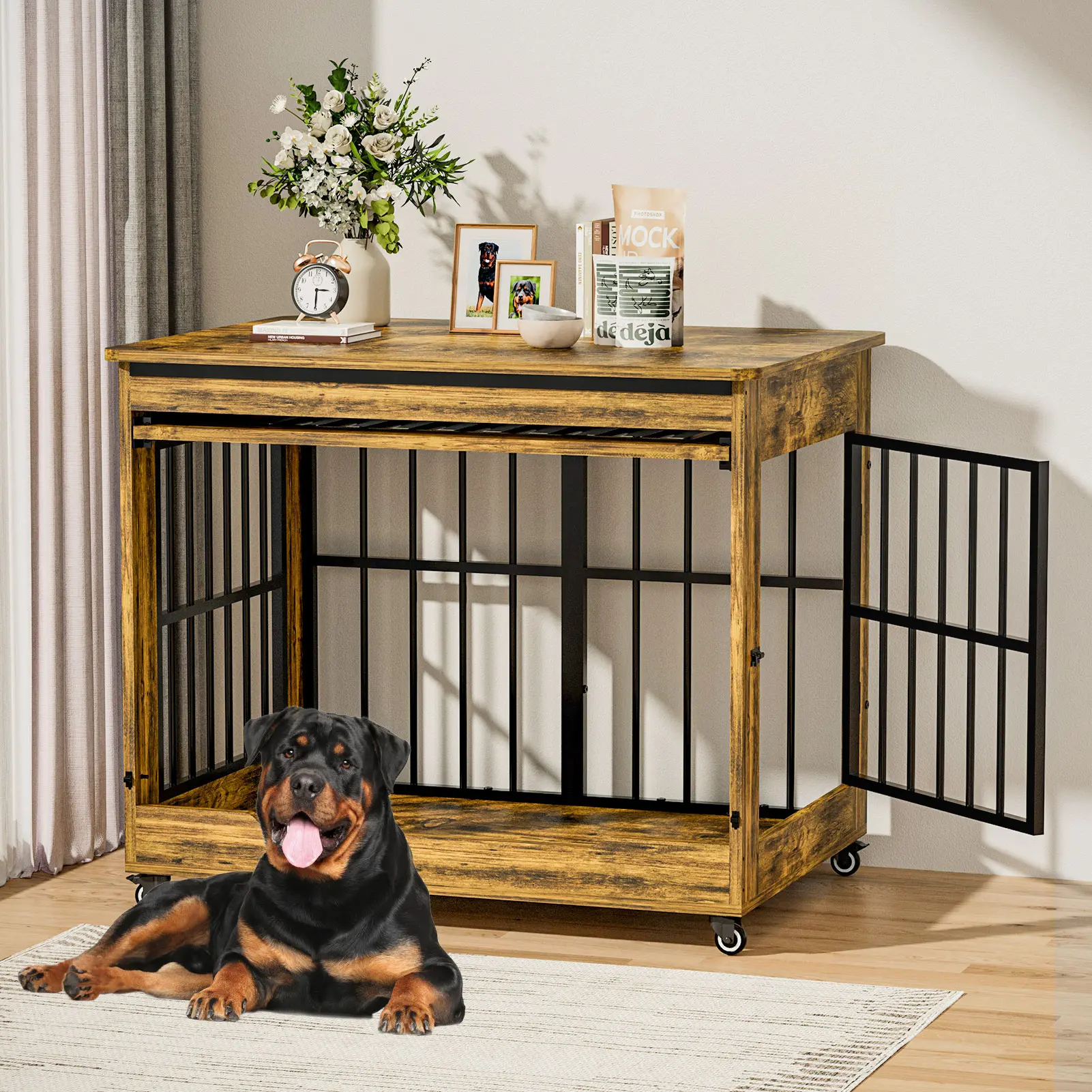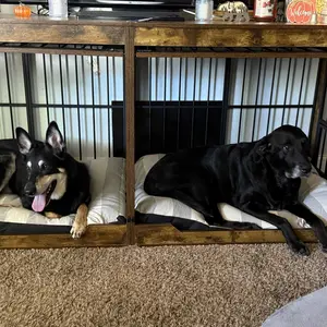 I was so excited for this! I saw all the videos. However, it isn’t true wood. The front doors are easy to get off track while the dogs are in the kennels. We had to put more reinforced locks on the top so our dog doesn’t try to escape. If your dog loves to be in kennels it probably would be fine.