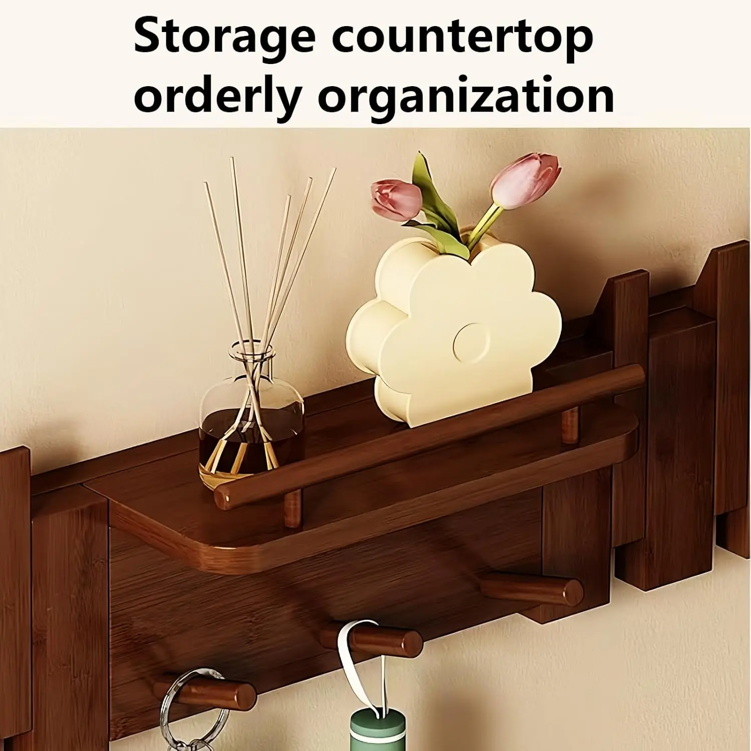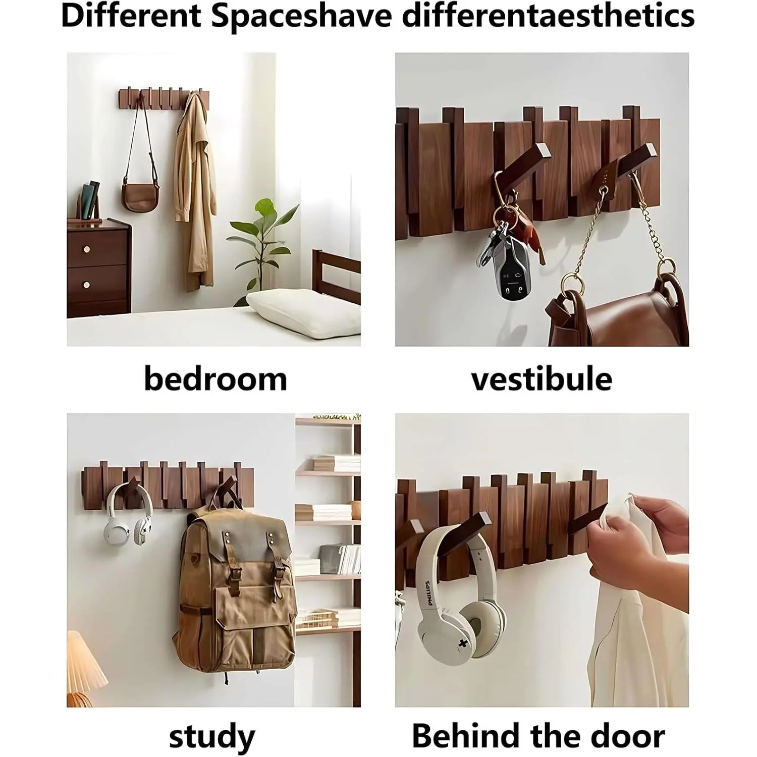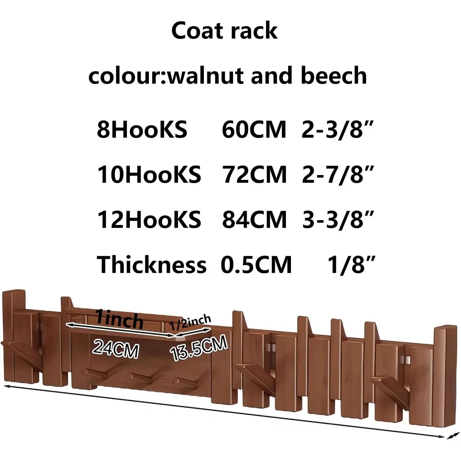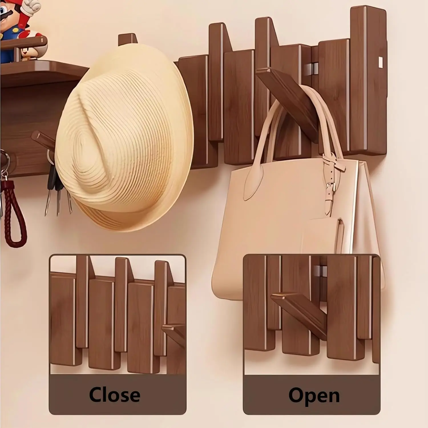 Walnut Wood Wall Mounted Coat Rack with Flip-Down Hooks