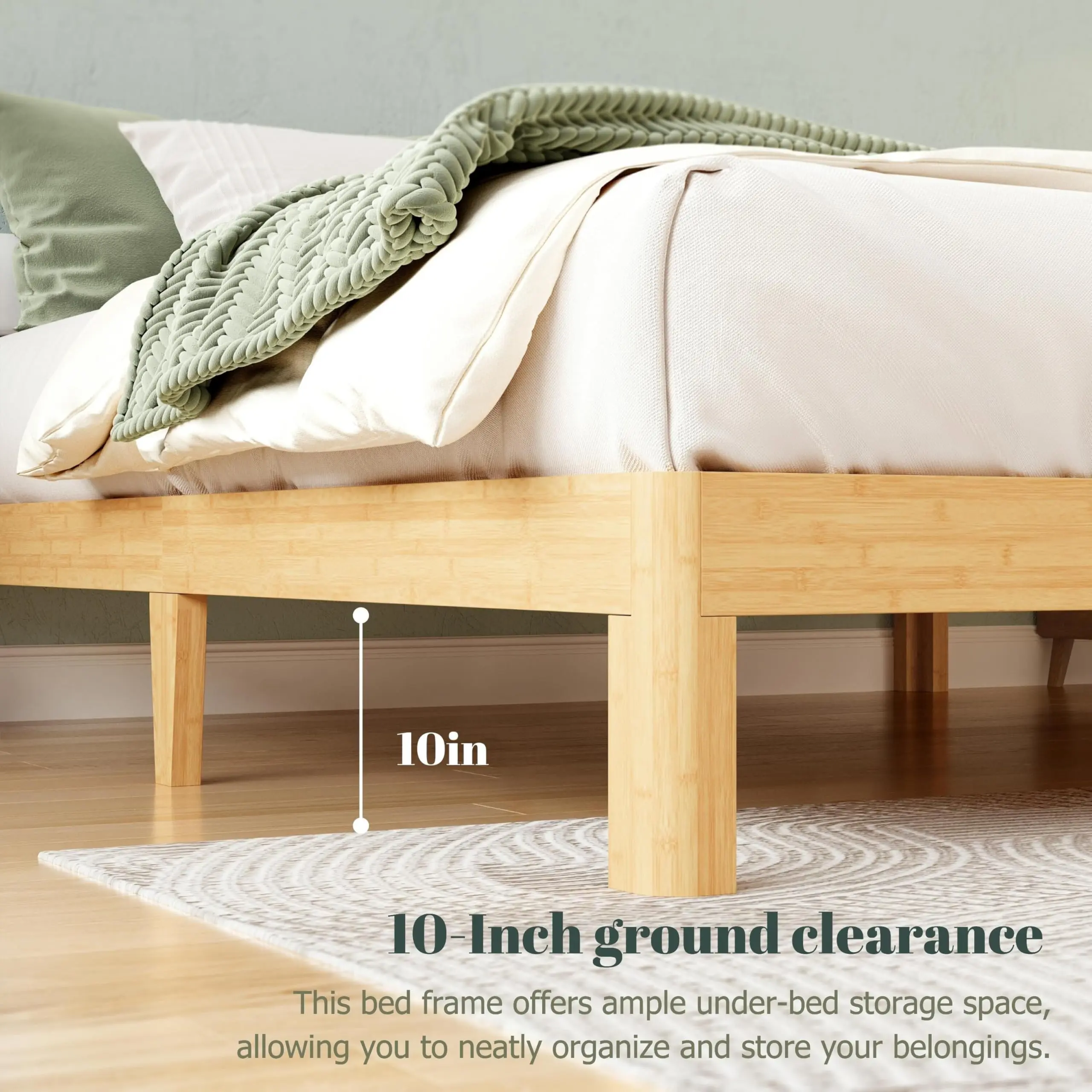 Not wood or bamboo. It’s metal that looks like wood. It’s sturdy I got the 18” high one because I like to see the flooring under the bed