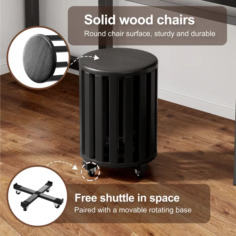 ·[Solid Wood + Locking Wheels for Easy Mobility] Built from 0.9" thick solid wood with classic mortise-and-tenon joinery and X-shaped metal support, these stools are strong and stable. Two of the larger stools come equipped with smooth 360°swivel casters featuring rust-resistant coating and locking brakes - making them easy to roll when you need them and stay put when you don't. Whether you're moving them between rooms, rolling them outside, or creating a flexible workspace, Tinpin wood stools ar