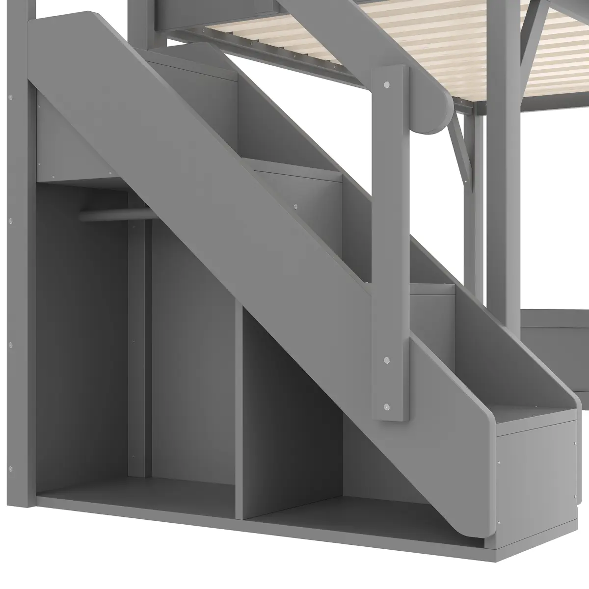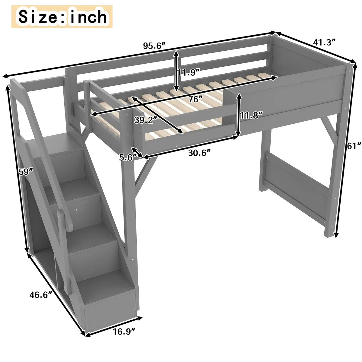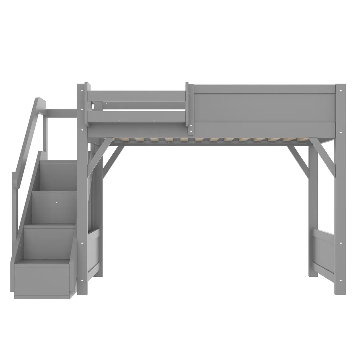 ·[Full-length Guardrails & Safe Stairs]Designed with full-length guardrails on the upper bunk and wide, easy-to-climb stairs, this loft bed offers enhanced safety for kids.The staircase design provides both secure access and extra stability.