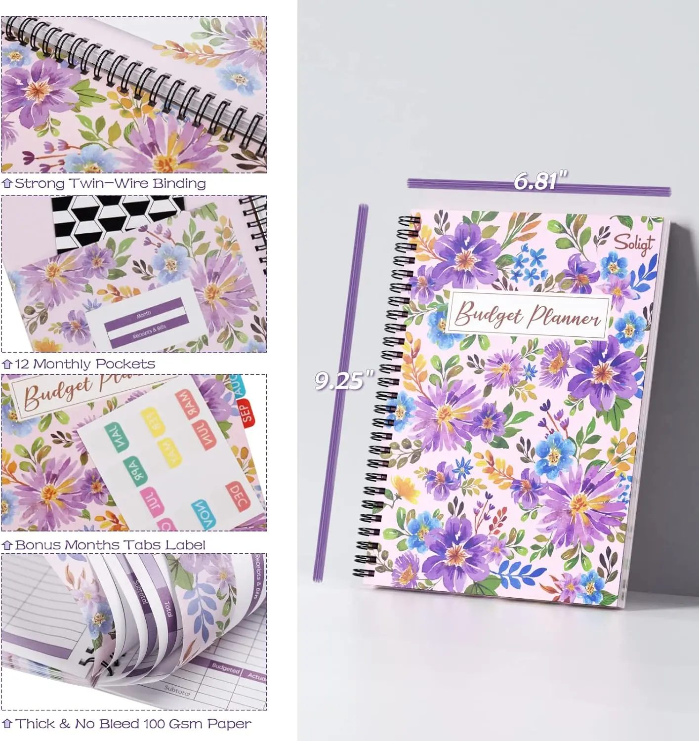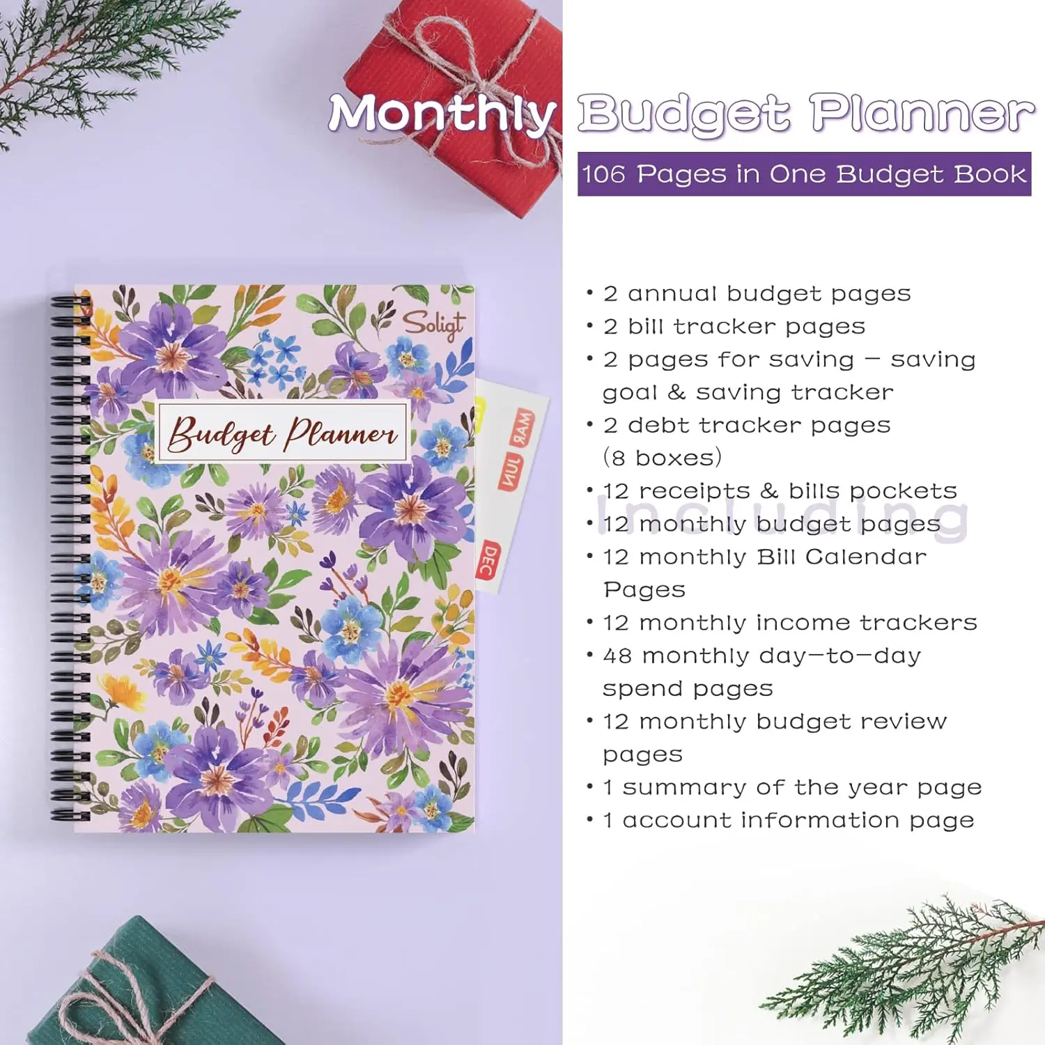 Soligt Undated Monthly Budget Planner with 12 bill & receipt pockets