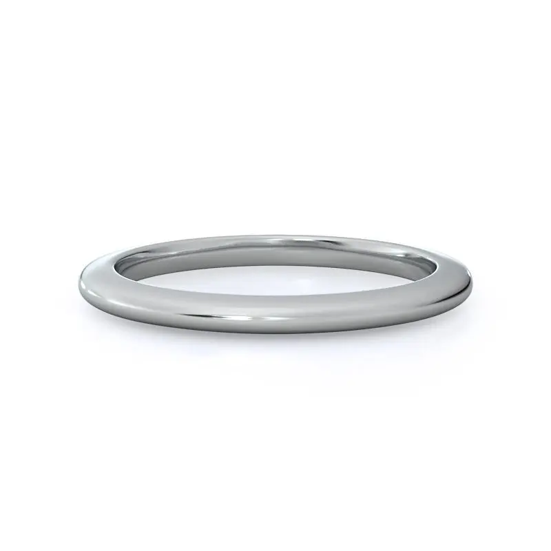 Looking for a sleek ring that sits flush with your stunning engagement ring? Look no further than this classic wedding band that keeps things simple. The elegant design features a slight dome effect, but the width is thinner to make sure it stacks perfectly with that diamond ring.