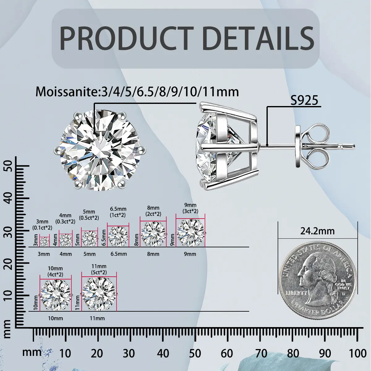 ·Metal: D color VVS synthetic moissanite with S925 sterling silver