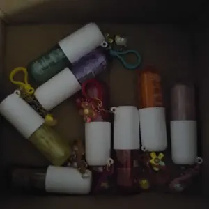 THESE ARE SO GOOD. They are tiny, perfect for carrying in small bags or clipping onto anything! They smell almost identical to the originals. The glitter is amazing and the charms are adorable!!🥹🥹 (Make sure you read which ones you get cause one set doesn’t come with charms!)