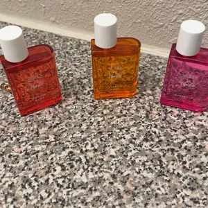 This three piece pack was worth the price but smaller bottles of perfume so meant for if your traveling but fruity and floral smells and would recommend if your looking for something cheap.