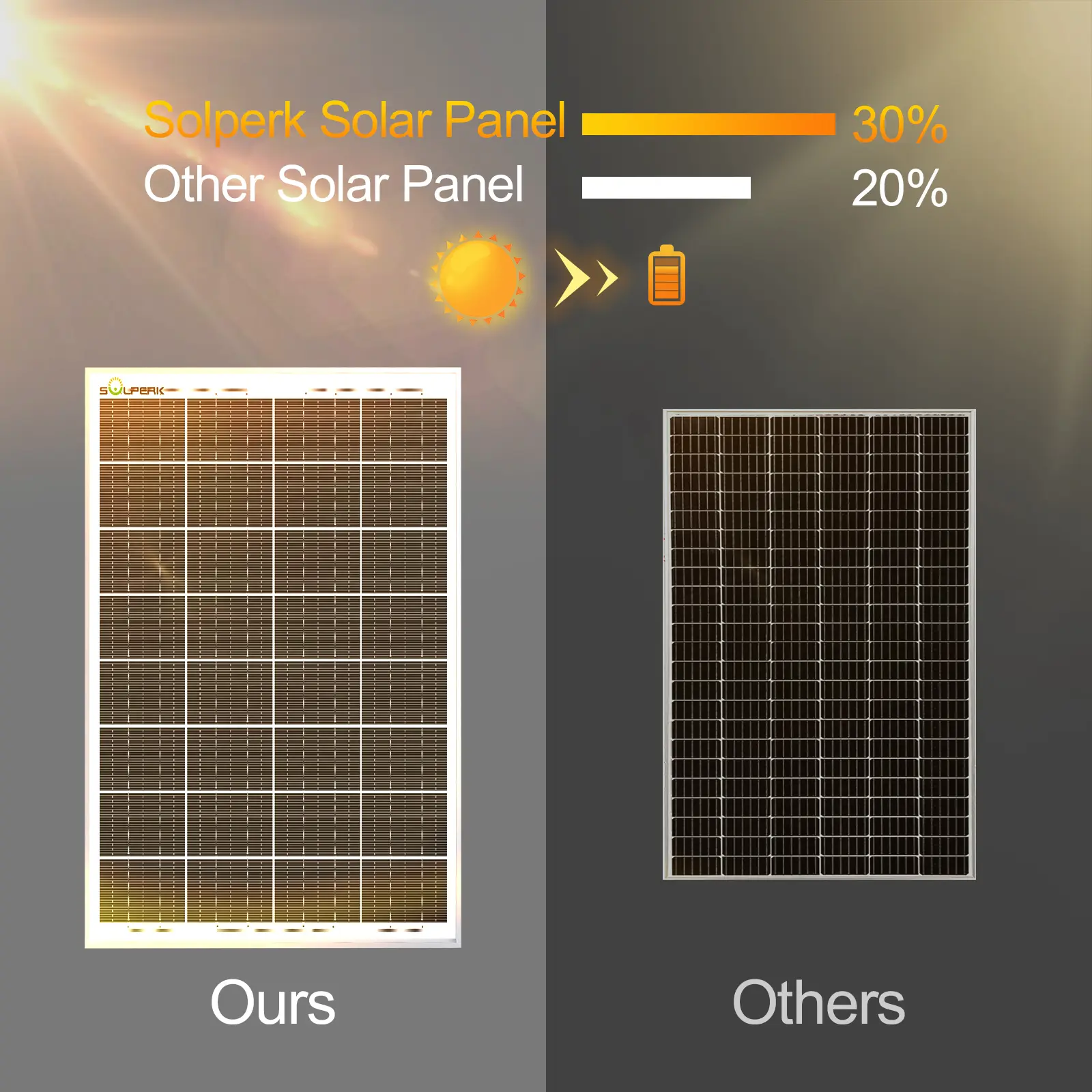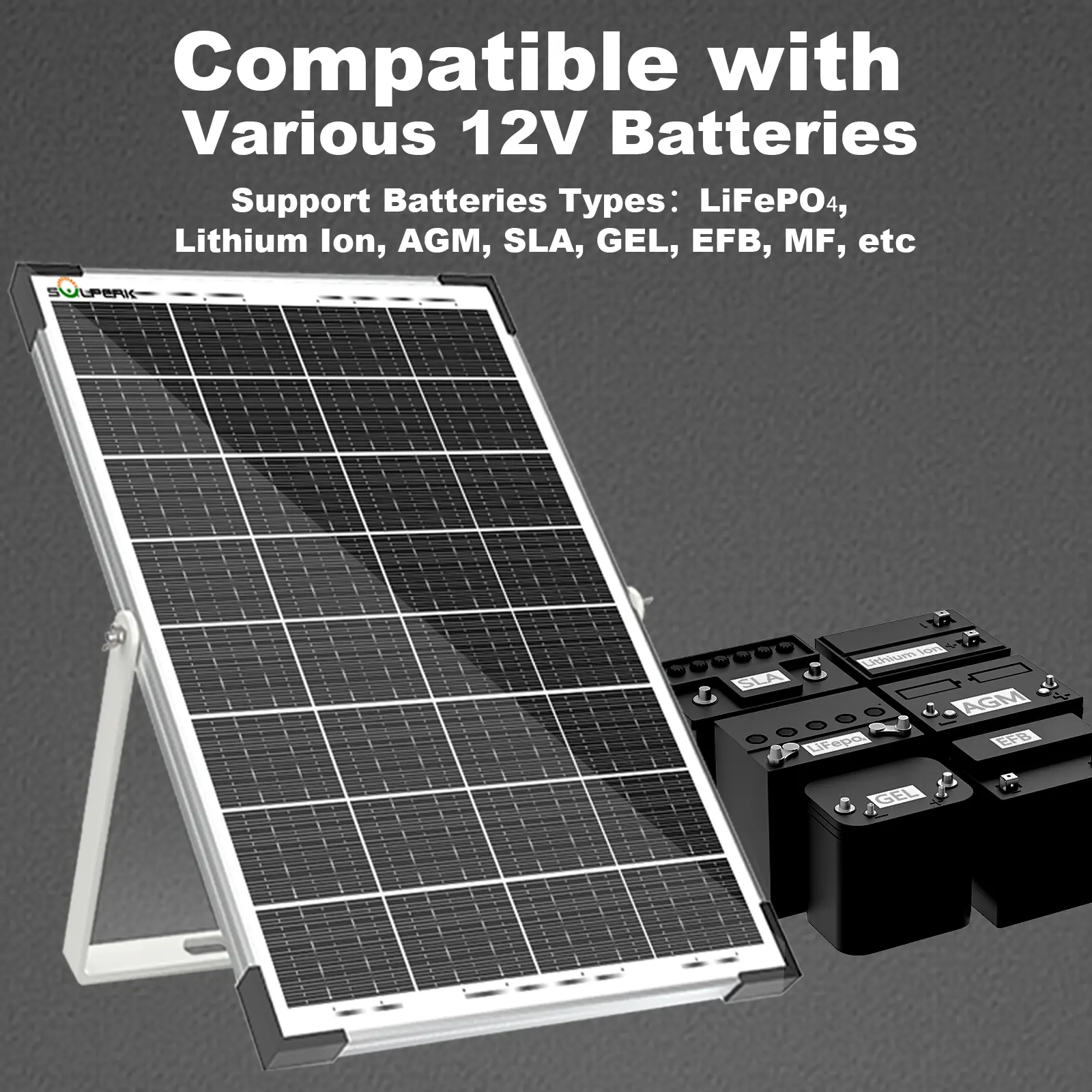 ·ăHigh Conversion RateăThis 30W solar panel with monocrystalline A+ solar cell has an excellent cell efficiency of 21%-30%. Designed to charge and maintain 12V rechargeable batteries like LiFePOâ, Lithium Ion, AGM, SLA, GEL, EFB, MF, etc. Keep batteries charged for trailer, tractor, truck, boat, motorcycle, RV, car, lawn mower, water pump, gate opener, electric fence, etc.