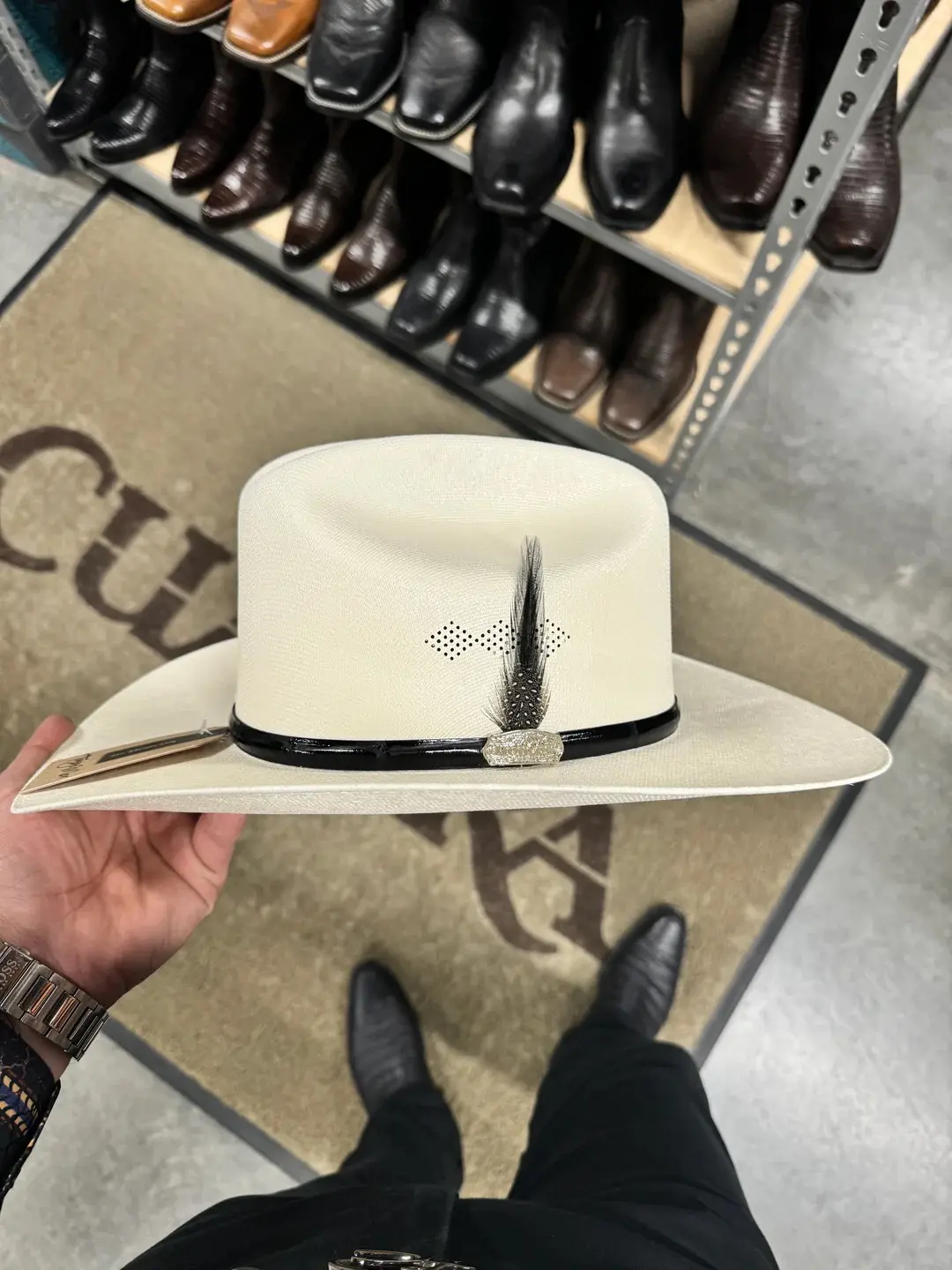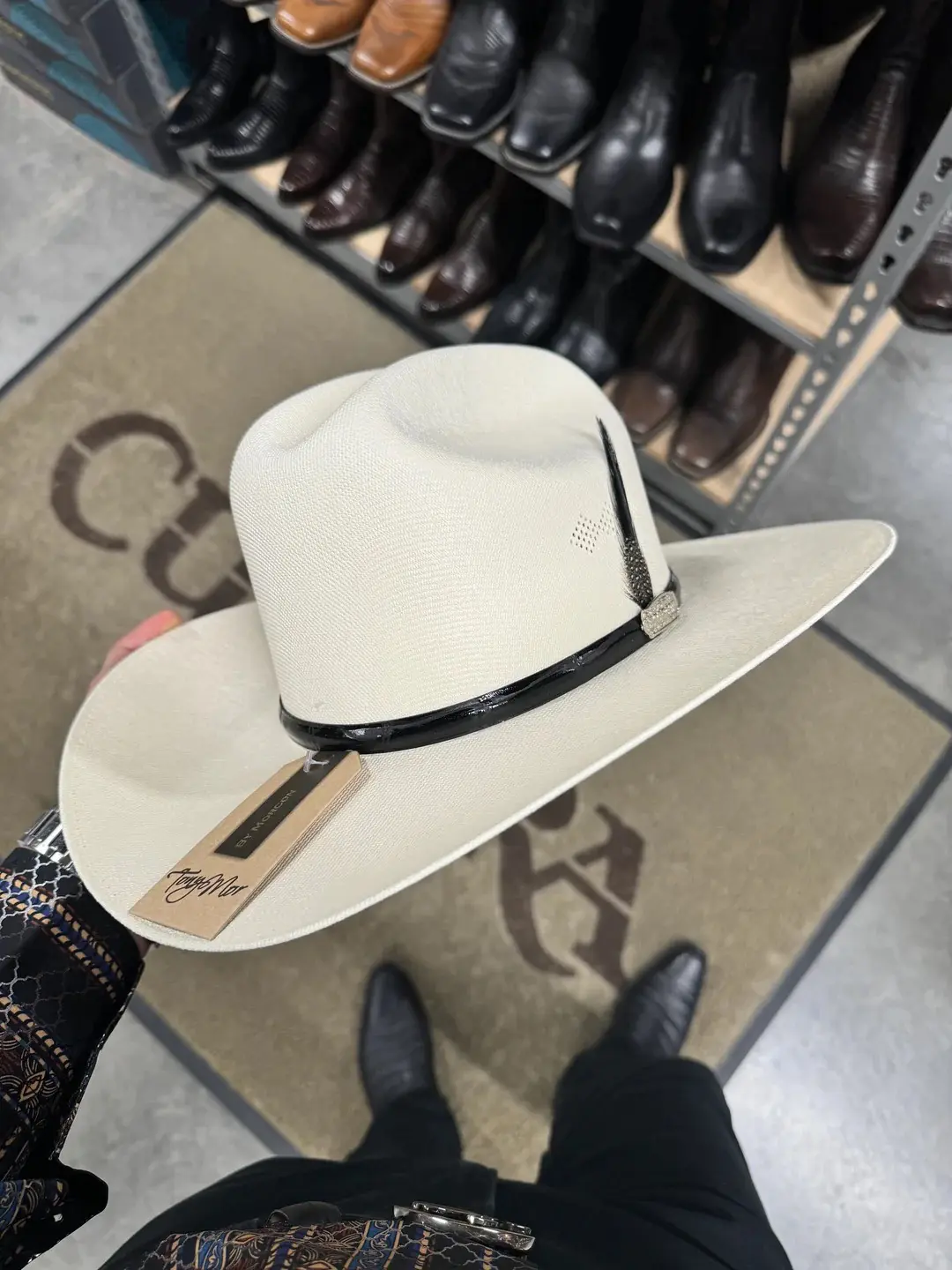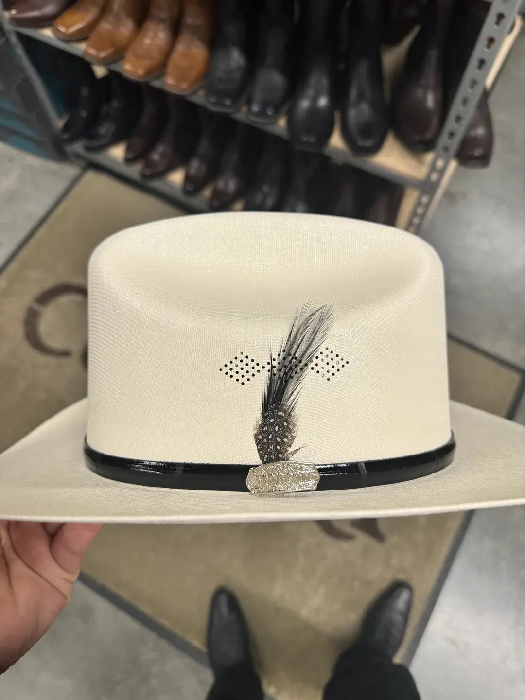Sombrero 1,000x Copa Chica Falda 3.5” Marca Morcon (Diamante Negro) Falda / Brim : 3.5" Copa / Crown : 4.5" Pluma Original de Colores marca Stetson Classic Cattleman Crease Sweatband Material: Telar Master 1x1 Sizing Help: *If you wear a 7 3/8 in a Stetson, we recommend a 7 1/2 in this brand* *Si usted mide un 7 3/8 en su Texana Stetson, recomendamos el 7 1/2 en esta marca*