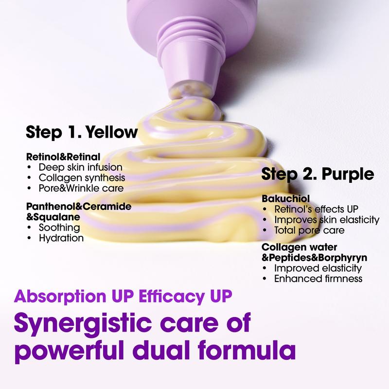 | Ingredients | [1st] Water/Aqua, Dipropylene Glycol, Octyldodecanol, Butylene Glycol, Methylpropanediol, Glycerin, 1,2-Hexanediol, Niacinamide, Caprylyl Methicone, Helianthus Annuus (Sunflower) Seed Oil, Ammonium Acryloyldimethyltaurate/VP Copolymer, Polyglyceryl-10 Behenate/Eicosadioate, Polymethylsilsesquioxane, Hydroxyethyl Acrylate/Sodium Acryloyldimethyl Taurate Copolymer, Polyglyceryl-2 Stearate, Acrylates/C10-30 Alkyl Acrylate Crosspolymer, Arginine, Glyceryl Stearate, Stearyl Alcohol, Glycine Soja (Soybean) Oil, Ethylhexylglycerin, Adenosine, Sorbitan Isostearate, Xanthan Gum, Retinol, Disodium EDTA, Undecane, Tridecane, Bixa Orellana Seed Oil, Macadamia Ternifolia Seed Oil, Tocopherol, Brassica Campestris (Rapeseed) Sterols, Polyglyceryl-10 Stearate, Cholesterol, Ceramide NP, Hydrogenated Phosphatidylcholine, Panthenol, Retinal, Squalane, Fragrance/Parfum [2nd] Water/Aqua, Dipropylene Glycol, Octyldodecanol, Butylene Glycol, Methylpropanediol, 1,2-Hexanediol, Glycerin, Niacinamide, Caprylyl Methicone, Ammonium Acryloyldimethyltaurate/VP Copolymer, Bakuchiol, Polyglyceryl-10 Behenate/Eicosadioate, Polymethylsilsesquioxane, Hydroxyethyl Acrylate/Sodium Acryloyldimethyl Taurate Copolymer, Polyglyceryl-2 Stearate, Acrylates/C10-30 Alkyl Acrylate Crosspolymer, Arginine, Glyceryl Stearate, Stearyl Alcohol, Dextrin, Ethylhexylglycerin, Adenosine, Gardenia Florida Fruit Extract, Sorbitan Isostearate, Xanthan Gum, Disodium EDTA, Cyanocobalamin, Collagen Water, Hydrogenated Polyisobutene, Acetyl Hexapeptide-8, Anemarrhena Asphodeloides Root Extract, Copper Tripeptide-1, Palmitoyl Pentapeptide-4, Palmitoyl Hexapeptide-12, Tocopherol, Fragrance/Parfum |
