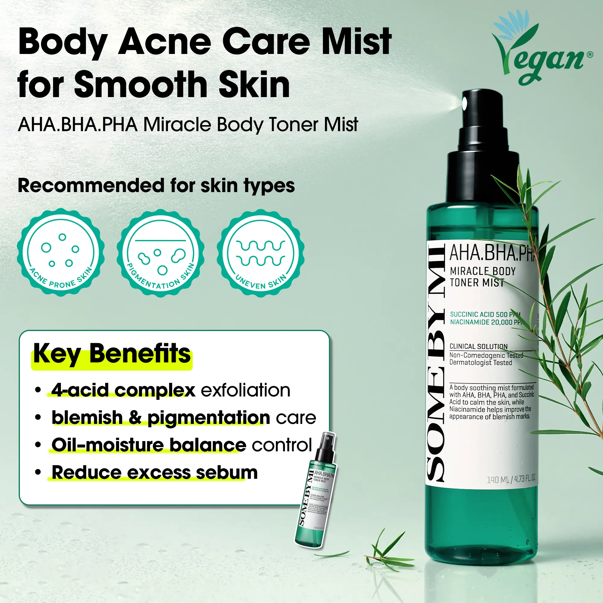 If your back and chest aren’t clearing up, you might be missing  @SOME BY MI US Toner Mist in your routine. Consistency over panic. #BodyAcne #KoreanSkincare #BodyMist