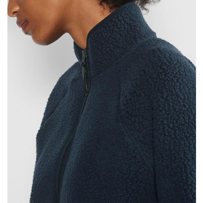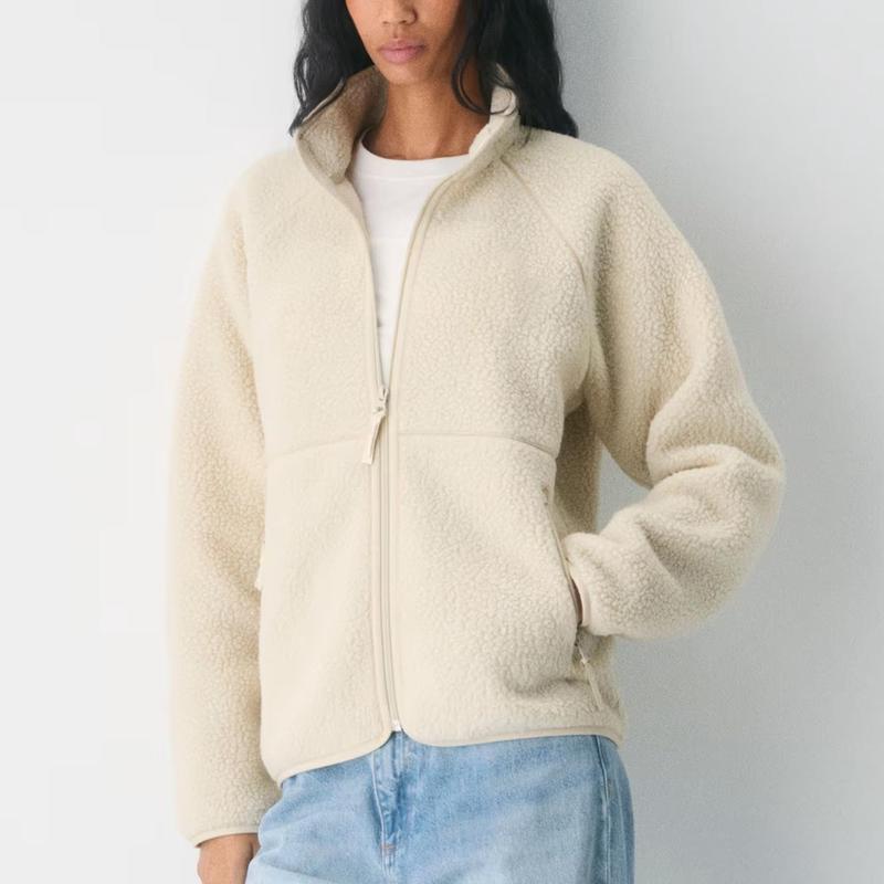 Stand-up collar design with full-length zipper provides effective wind protection and warmth, protecting the neck.