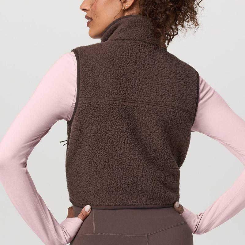 Design: The winter-ready sleeveless fleece vest boasts a stand-up collar, zippered pockets, a zipper closure, and hemmed cuffs and hem. Its cropped silhouette and relaxed fit provide cozy warmth.