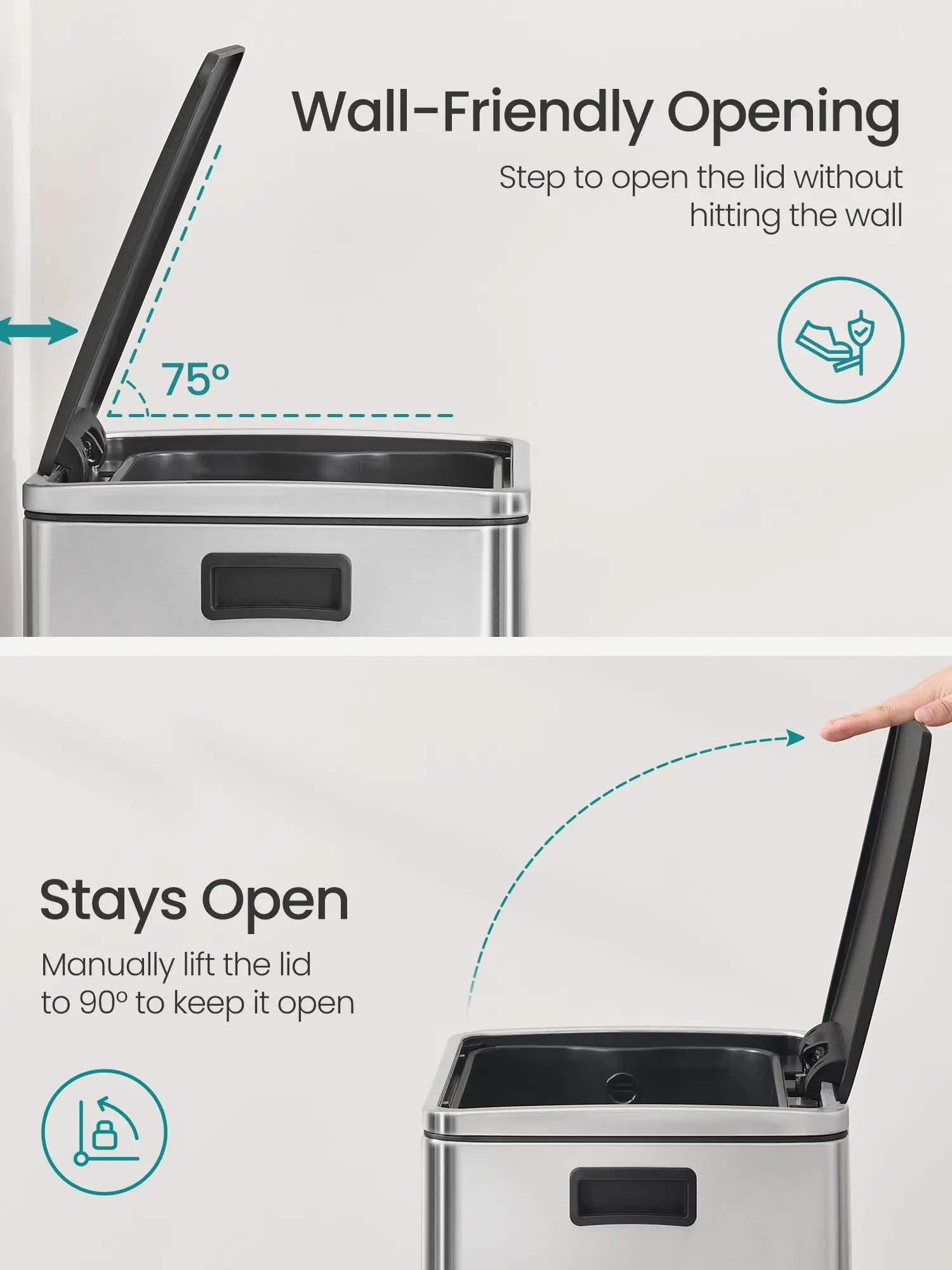 ·Easy to Empty: Inner bucket with 2 handles for easy emptying and cleaning.