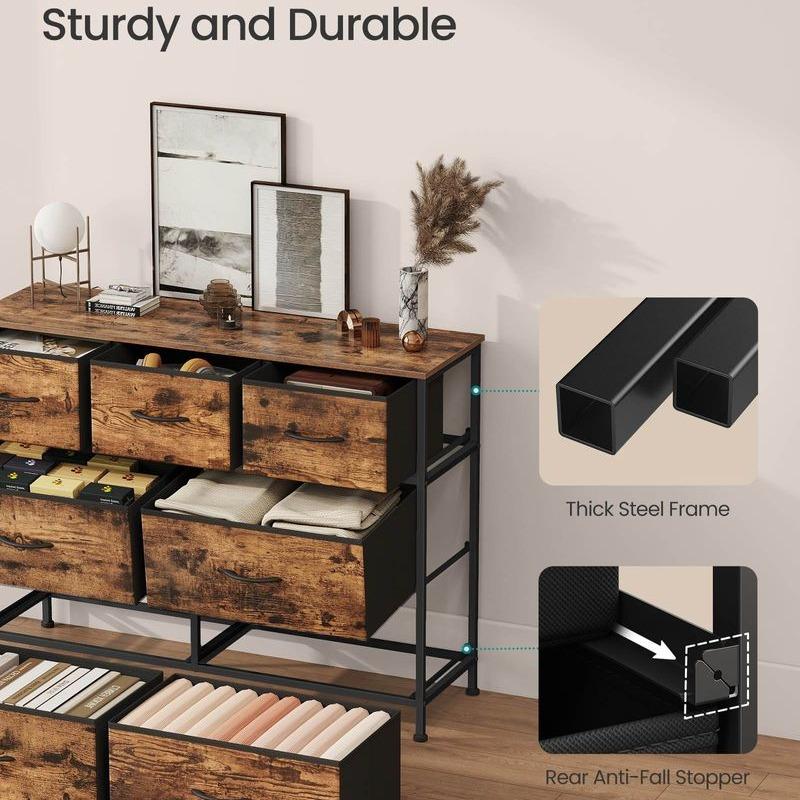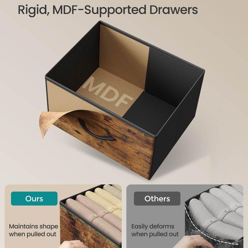 ·Sturdy Construction: Built with a steel frame, a particleboard top, and non-woven fabric drawers with MDF structures, ensuring lasting durability and strength.