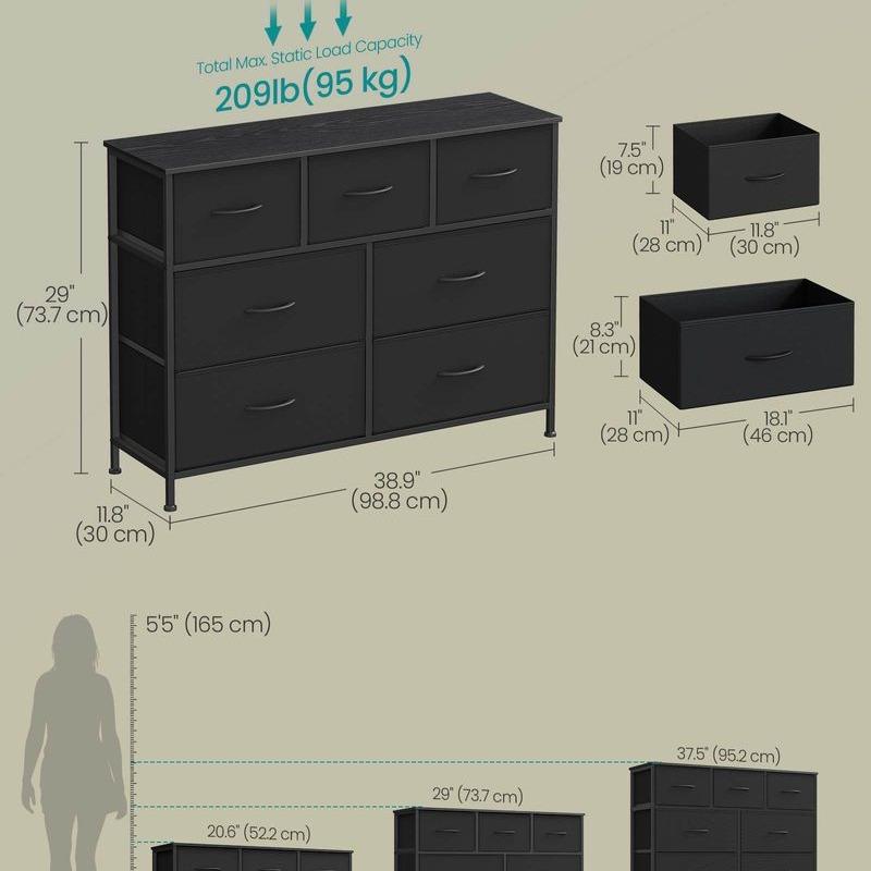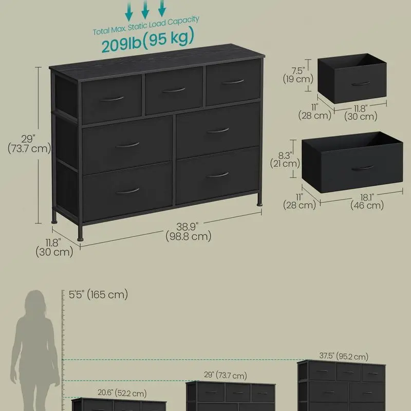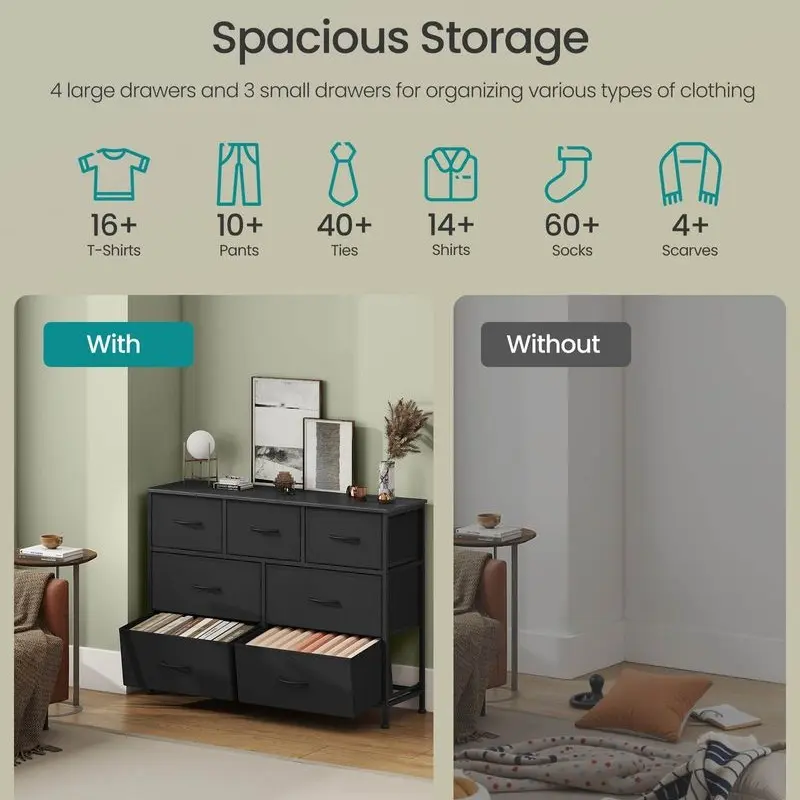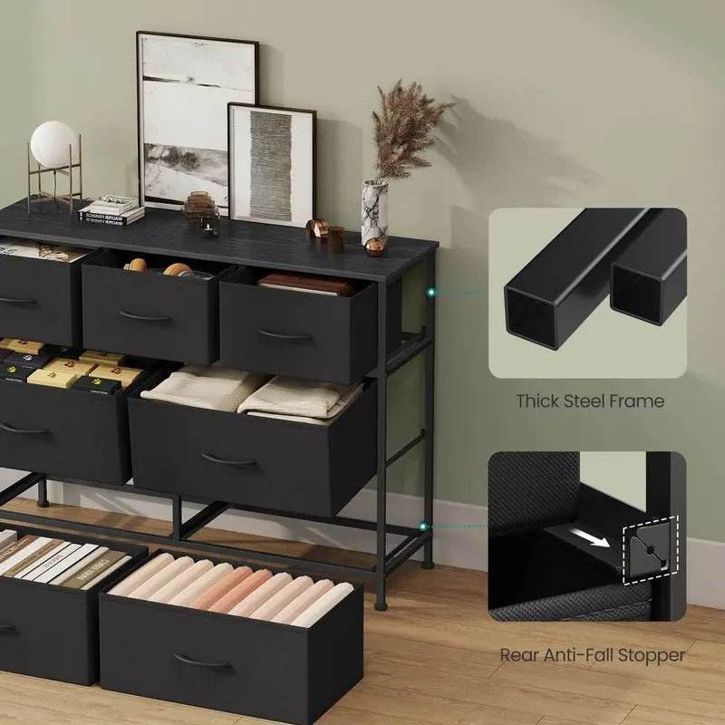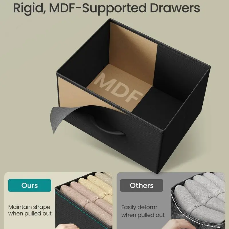 ·Sturdy Construction: Built with a steel frame, a particleboard top, and non-woven fabric drawers with MDF structures, ensuring lasting durability and strength.