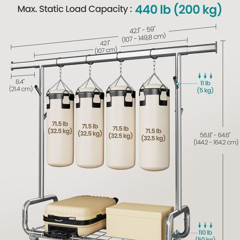 ·Sturdy construction: Premium steel tubing and a one-piece hanging rod ensure strong support and resists bending under heavy loads.