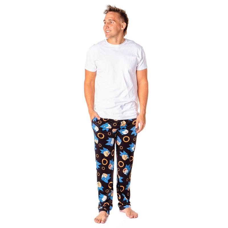 5. Sonic The Hedgehog Men's Allover Character And Rings Video Game Lounge Pajama Pants
