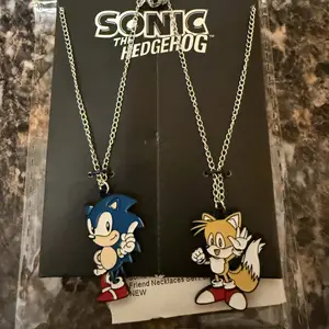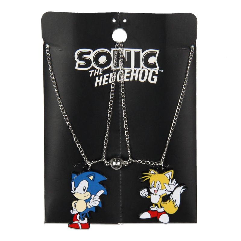 Celebrate an friendship with this Sonic the Hedgehog Best Friends Necklace Set. Designed as a testament to the enduring bond between Sonic and Tails, this necklace set embodies the spirit of camaraderie that lies at the heart of their thrilling adventures. The set includes two distinct 18-inch necklaces, each with a 3-inch extender for adjustable fitting. One necklace showcases Sonic's beautifully crafted enamel pendant, featuring his recognizable blue hue and dynamic pose. The other necklace features Tails, depicted in his classic orange and white design, with his characteristic two tails captured in beautiful detail. THIS BEST FRIENDS NECKLACE SET IS AN PRODUCT - Designed as a testament to the enduring bond between Sonic and Tails. This necklace set embodies the camaraderie spirit at the heart of their thrilling adventures. They will arrive to you professionally bagged with trademarked packaging MATERIAL - This necklace set is designed to last and is made of a metal alloy. The pendants have lacquer-colored designs BEST FRIENDS CHARACTER DESIGN - One necklace showcases Sonic's beautifully crafted enamel pendant, featuring his recognizable blue hue and dynamic pose. The other necklace features Tails, depicted in his classic orange and white design, with his characteristic two tails captured in beautiful detail. GREAT FEATURES - Both necklaces feature a lobster claw closure and a sturdy chain for day-to-day wear! Chain: 18 1/2" long with 3" extender, Pendant: 1" x 1/2" WEAR THEM TOGETHER, OR PASS OFF ONE TO YOUR BESTIE! - Whether worn together or shared between two friends, these necklaces symbolize a connection as strong and enduring as the friendship between Sonic and Tails.