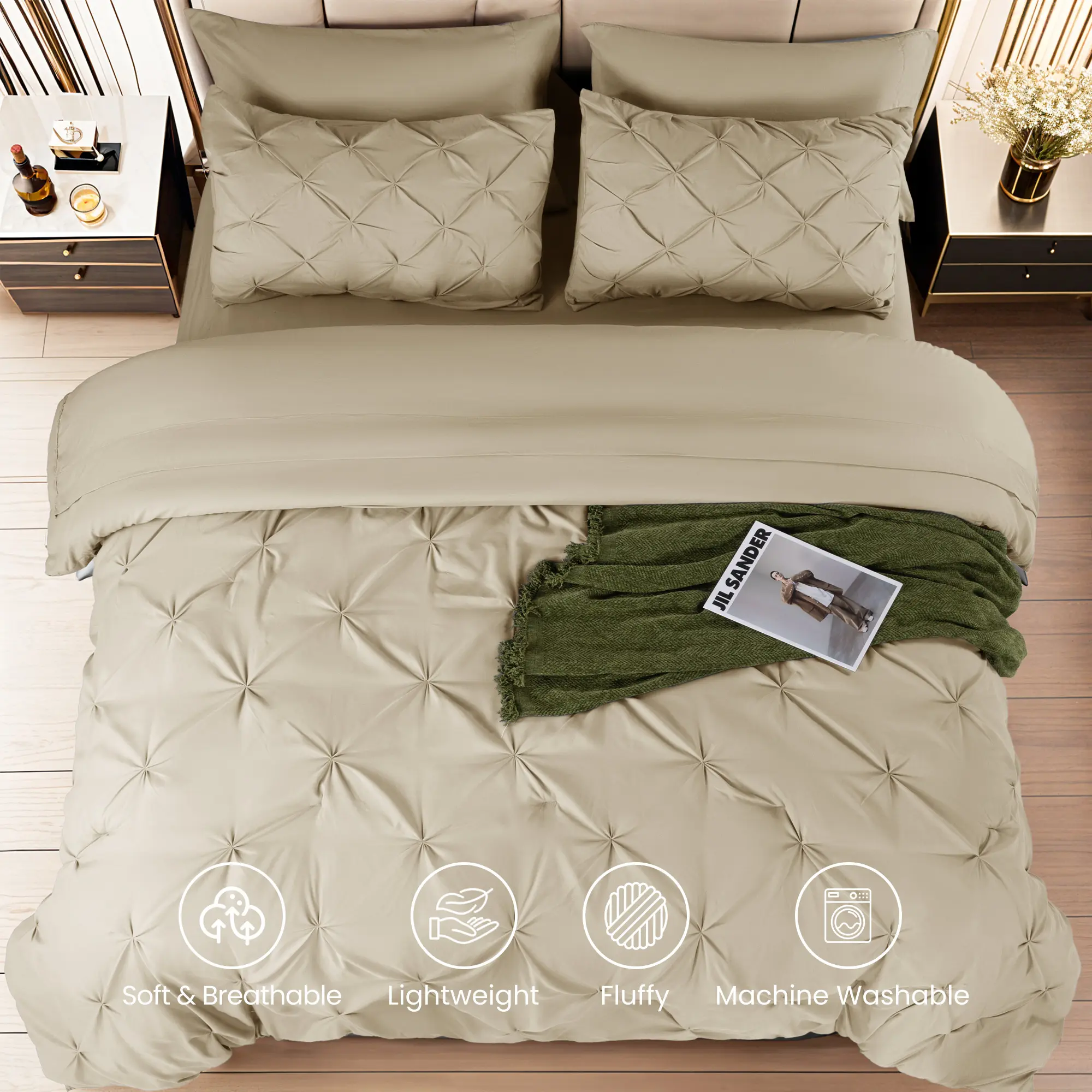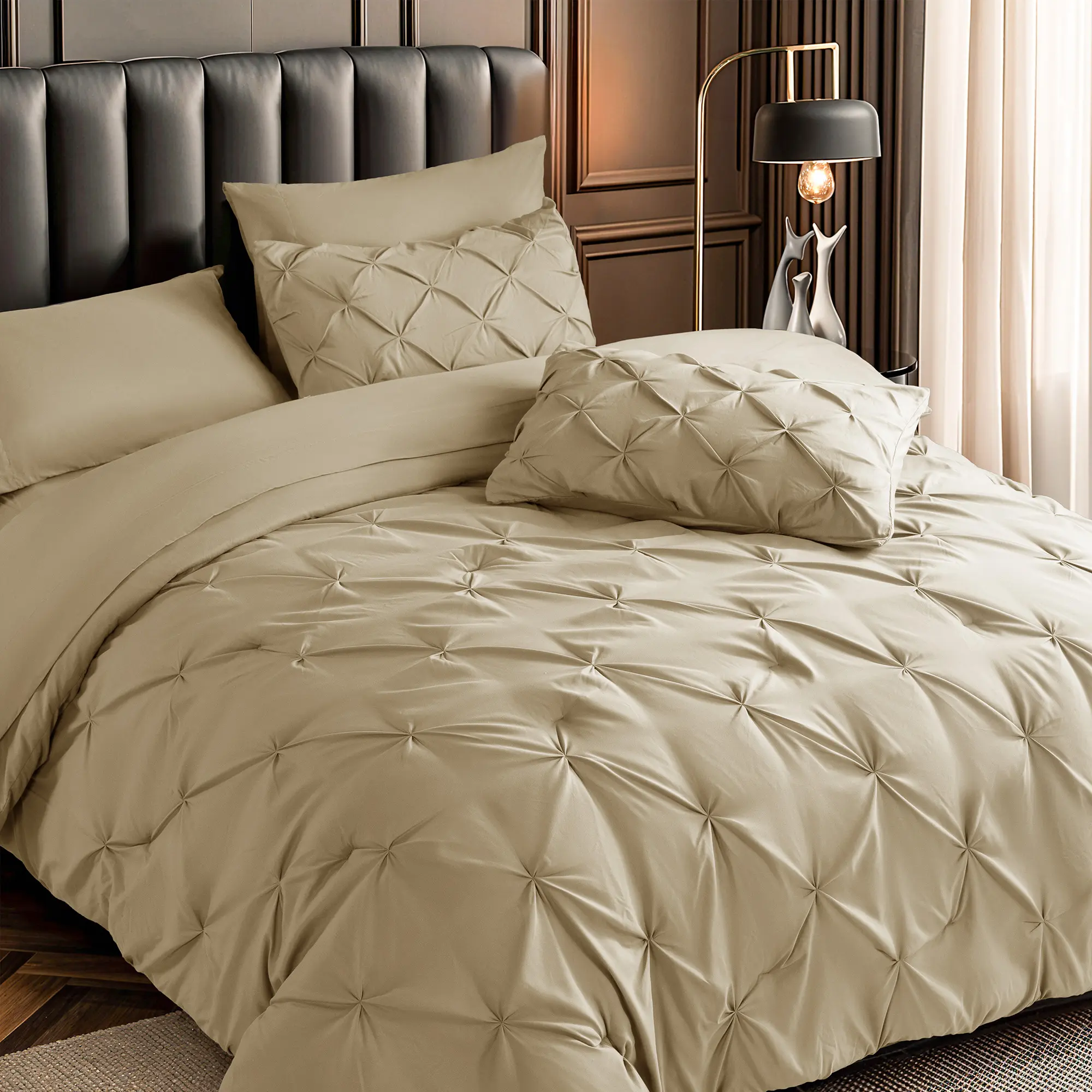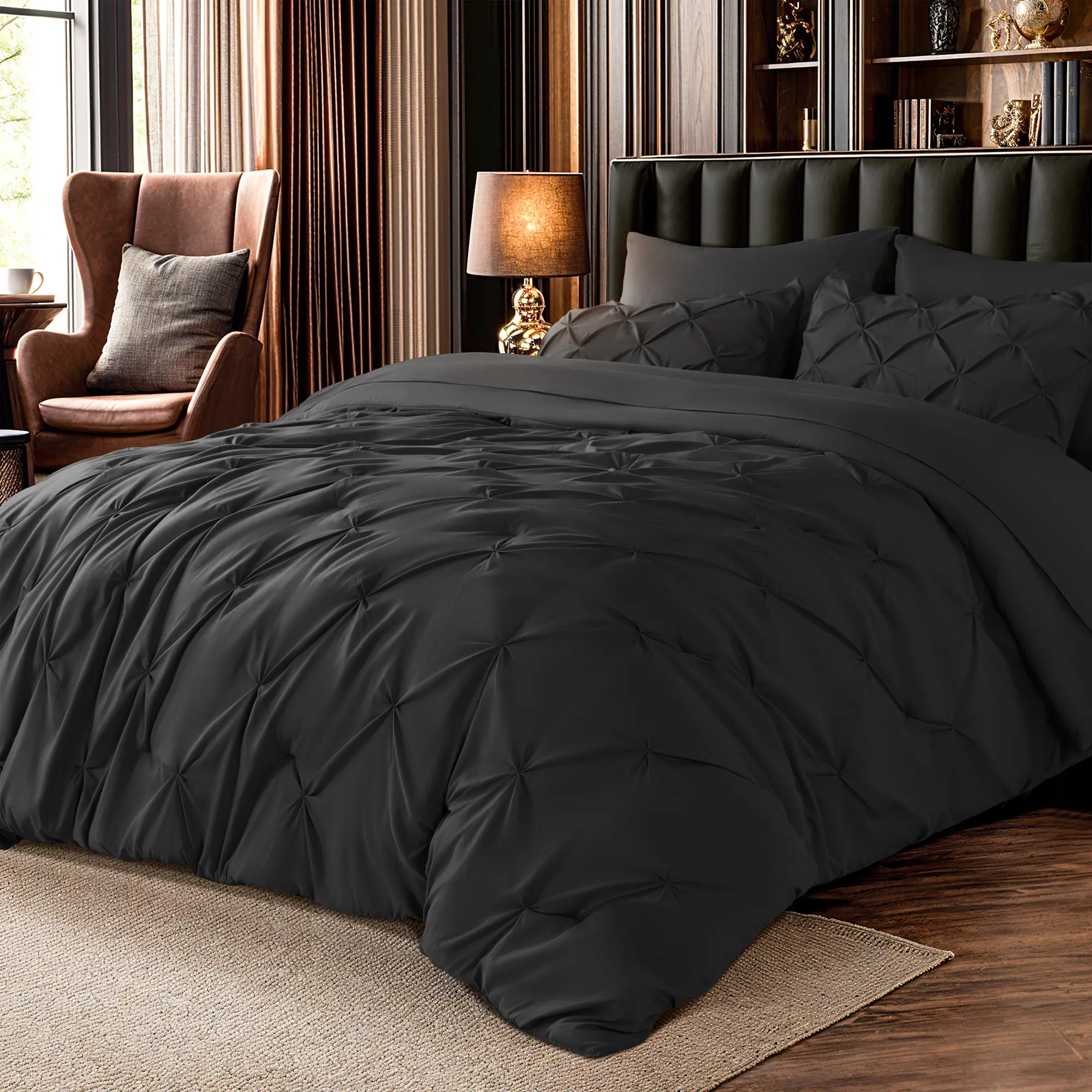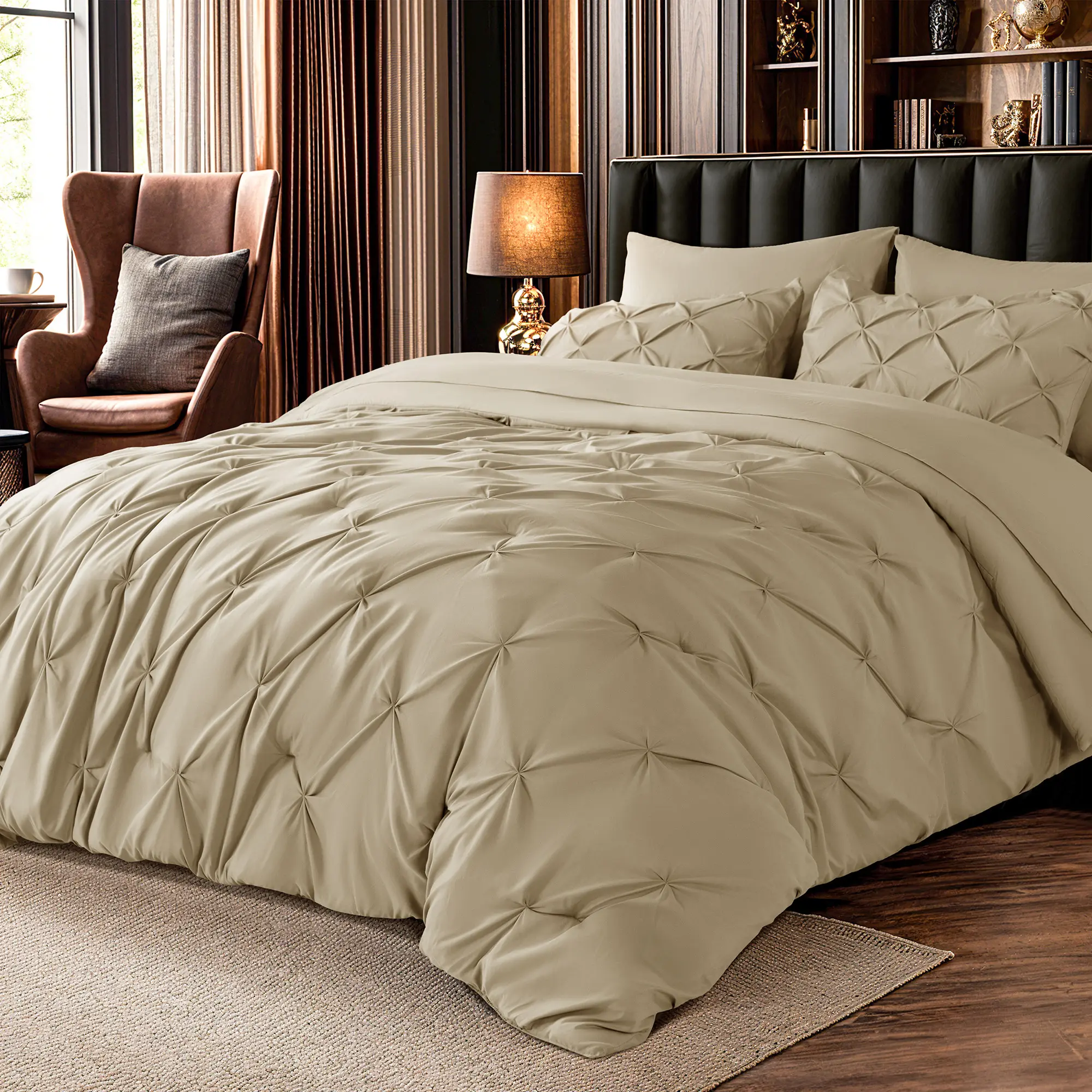 The Sonoro Kate 7-Piece Comforter Set blends minimalist design with timeless comfort, offering a hotel-style upgrade that’s both cozy and refined. Whether for a modern master suite or a welcoming guest room, this all-season set delivers on both style and function.