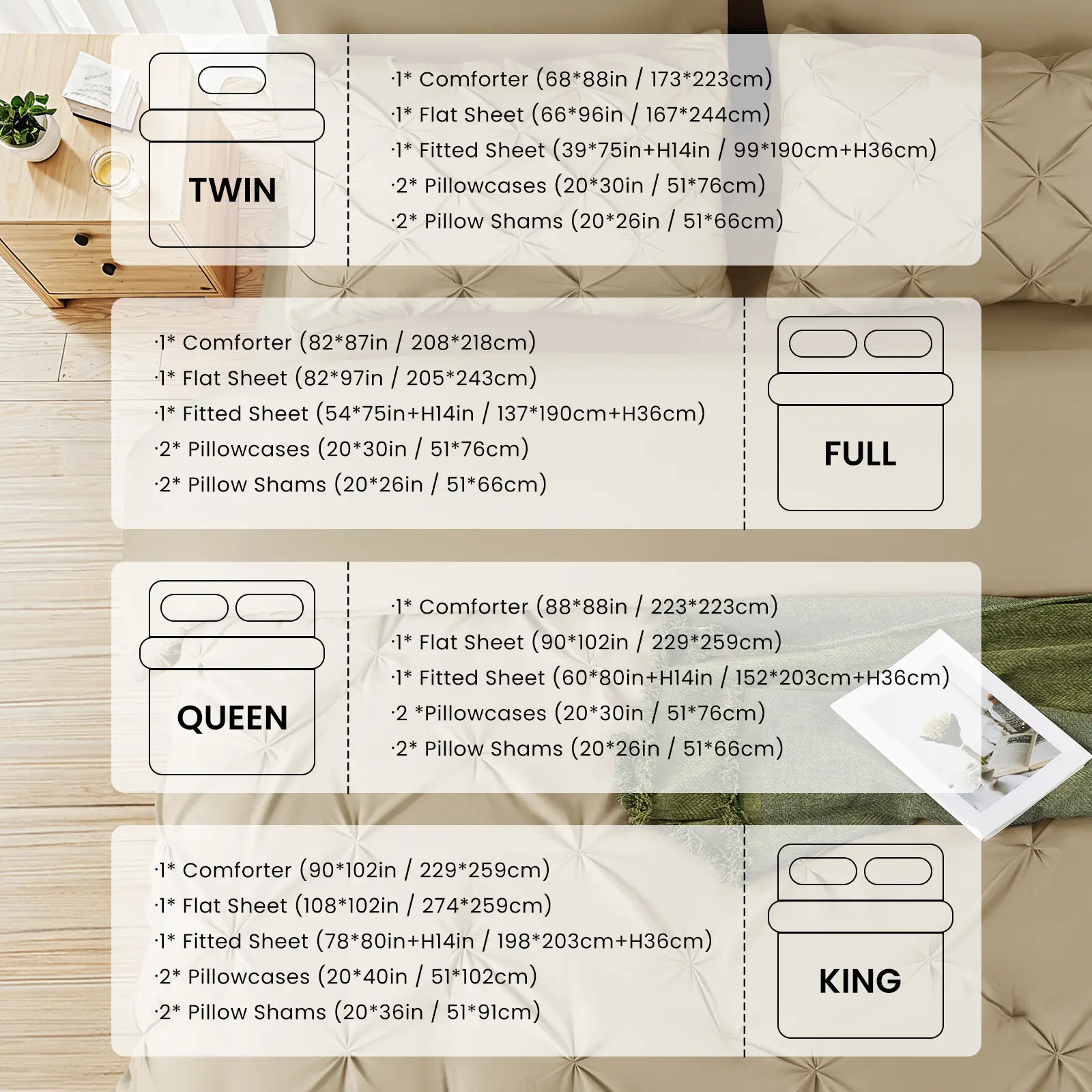 ️ Includes: Comforter (1), Fitted Sheet (1), Flat Sheet (1), Pillowcases (2), Decorative Shams (2)️ No extra purchases needed – ready for immediate cozy sleep!