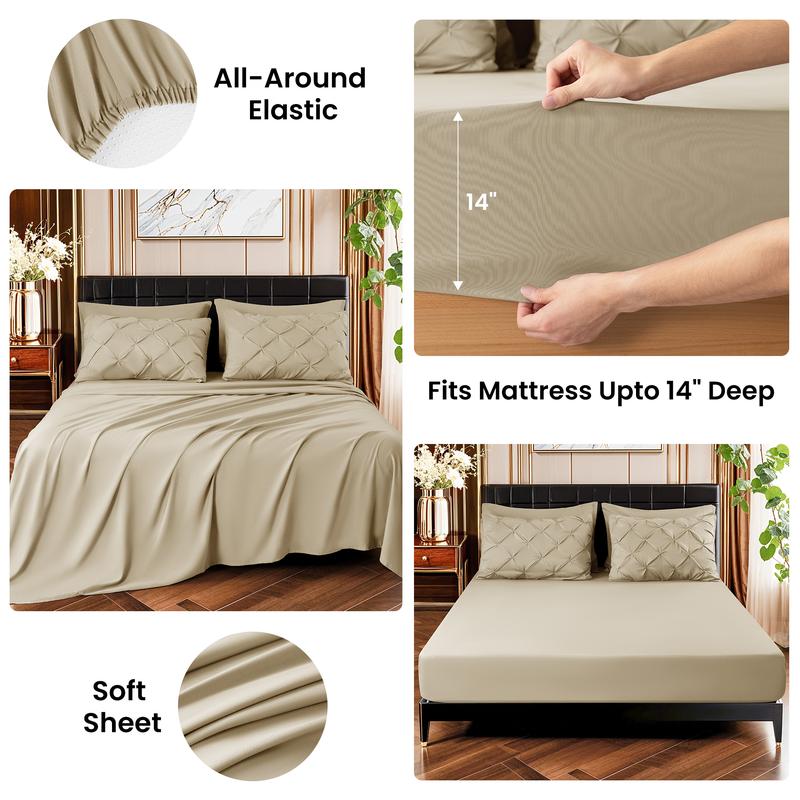 The sheets are designed with high-quality elastic, ensuring a perfect fit on mattresses up to 14 inches deep. This elasticized feature provides a snug, secure fit that prevents any slipping or shifting, keeping your bed looking tidy and comfortable all night long. Whether you're tossing and turning or simply adjusting the sheets, rest assured they will stay in place, offering a smooth and seamless sleep experience every time.