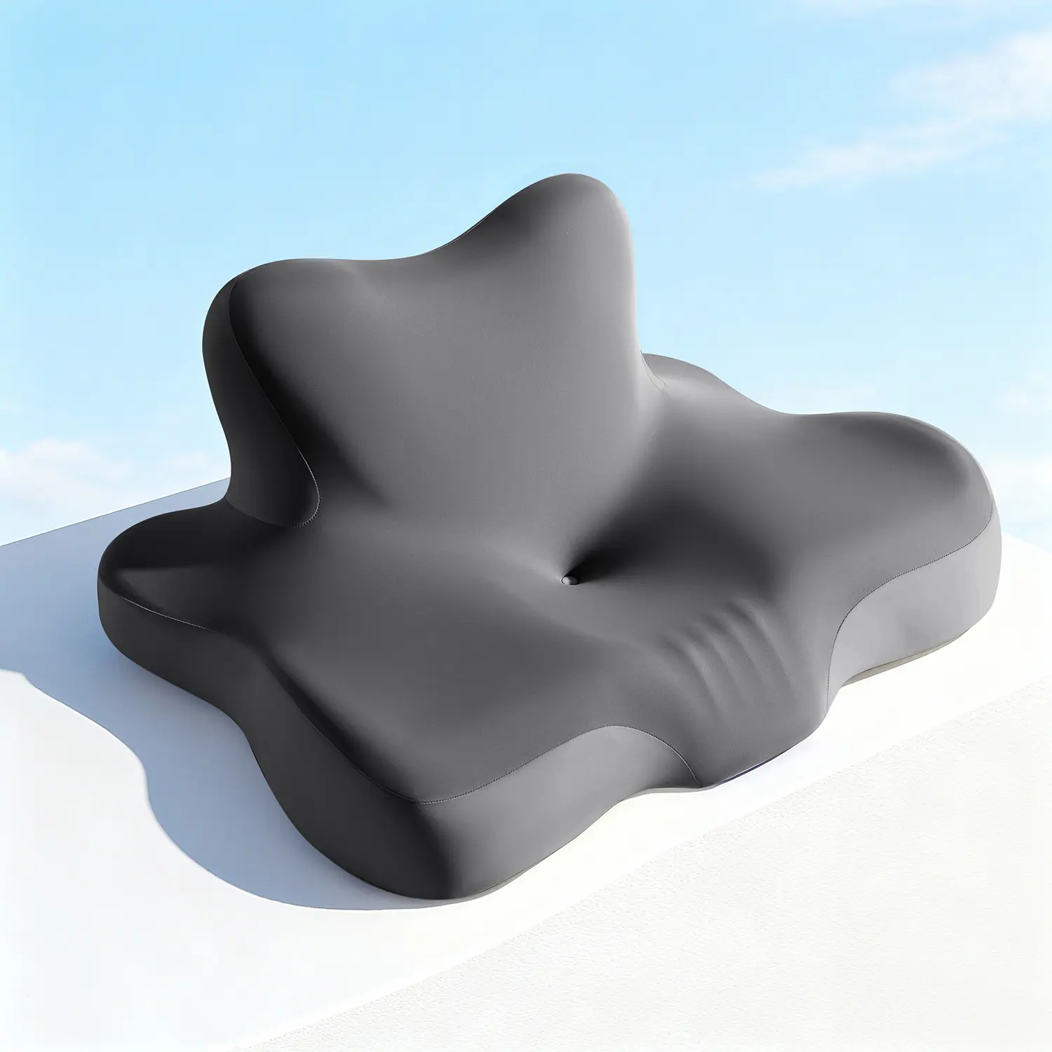 The Sonoro Kate cervical pillow features a butterfly contour shape, raised side supports, and a pressure-relief hollow center that helps align the spine and reduce neck and shoulder tension. Designed for natural head positioning, it provides targeted support that eases stiffness and promotes more comfortable sleep.