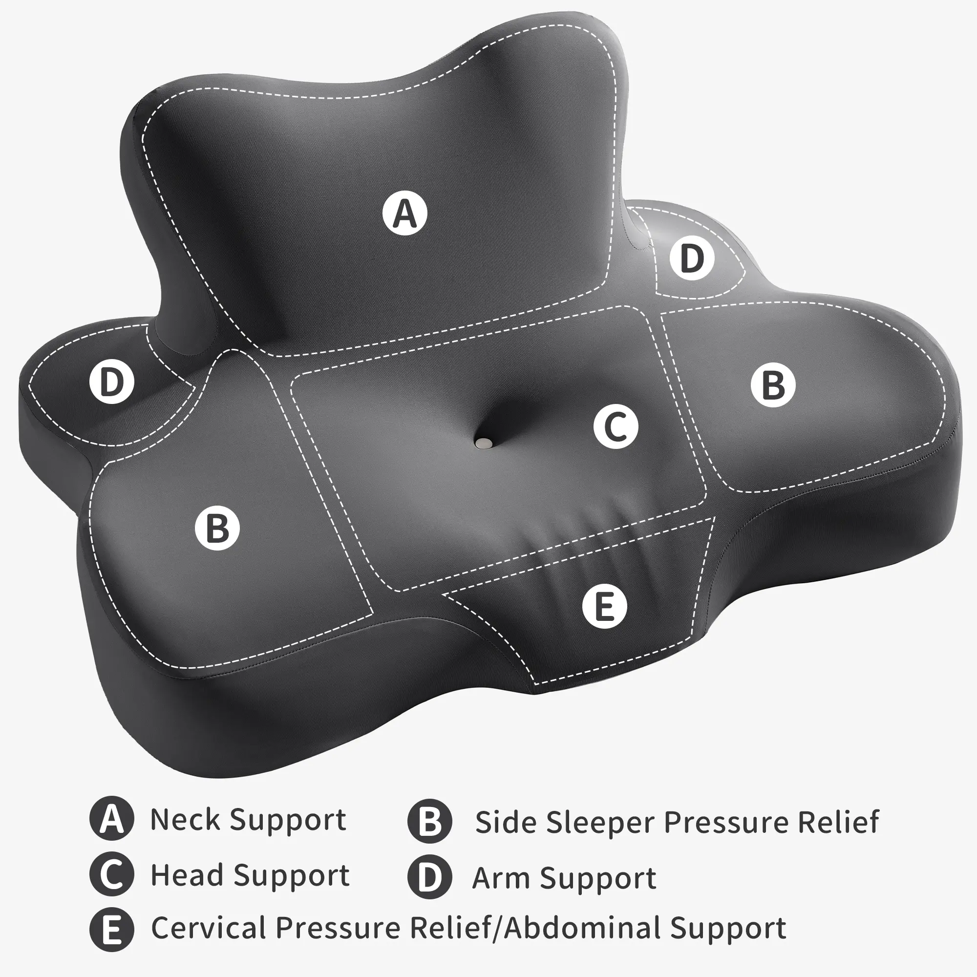 Whether you sleep on your side, back, or stomach, this pillow adapts to your sleeping style. The unique armrest cutouts and curved contour design make it ideal for people who shift positions throughout the night. Perfect for sleeping, reading, gaming, or relaxing in bed.