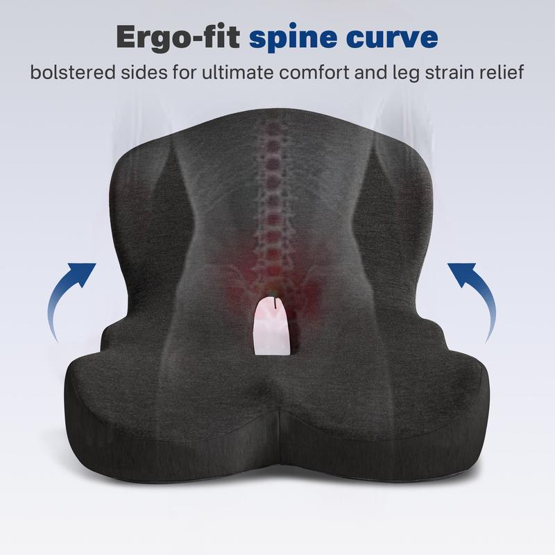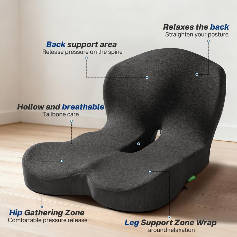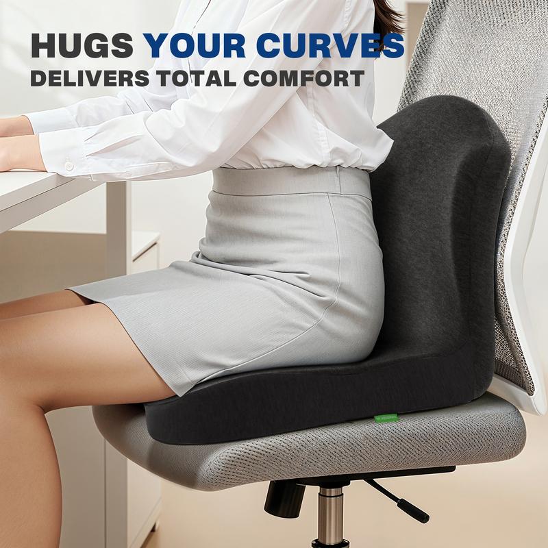 ·【High Density Memory Foam】 Buttocks cushion with back support is made of high resilience memory foam, which instantly conforms to your body's curves when you sit down, and provides gentle but powerful support, allowing you to say goodbye to sitting stiffness and fatigue from sitting for a long time