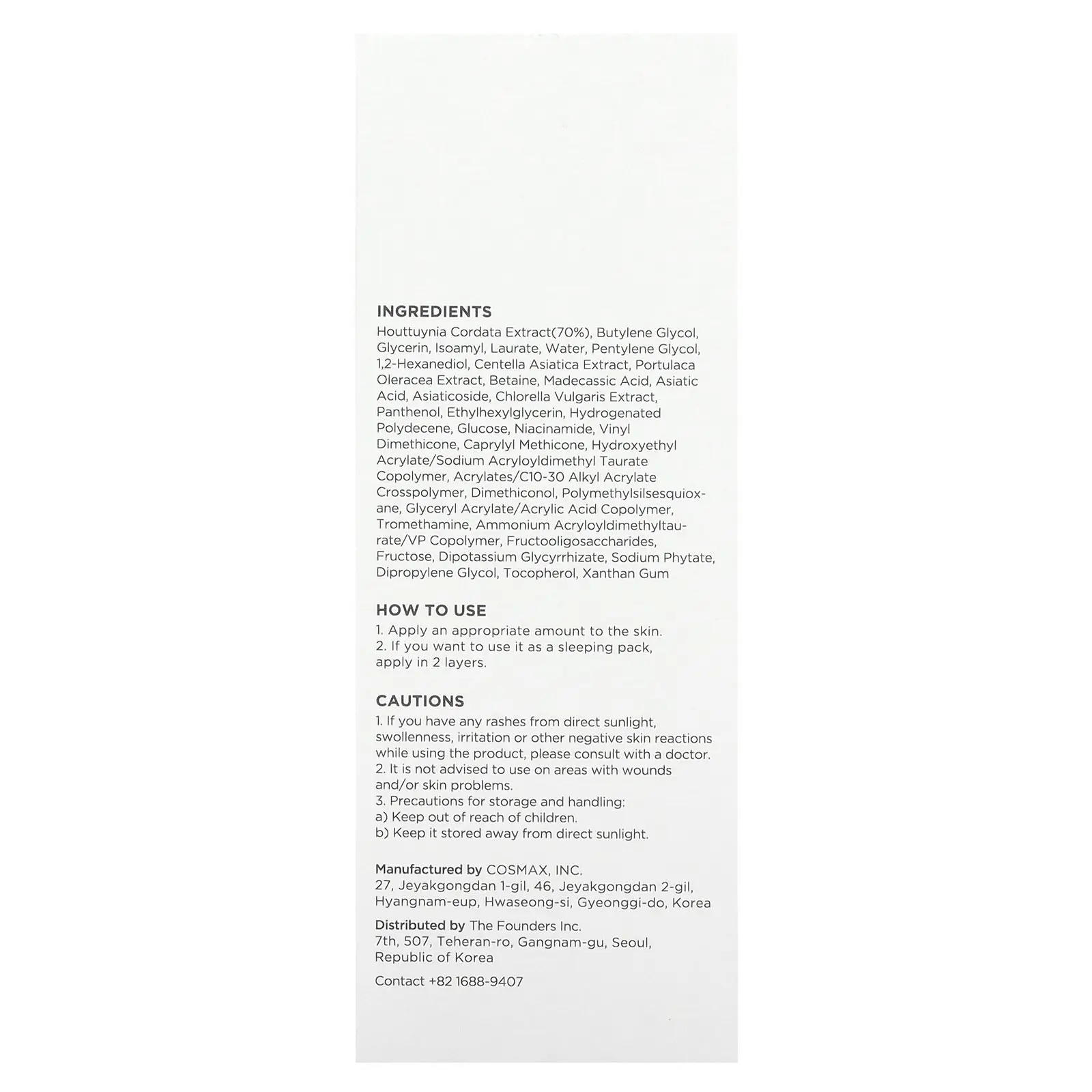 IngredientsHouttuynia cordata extract (70%), butylene