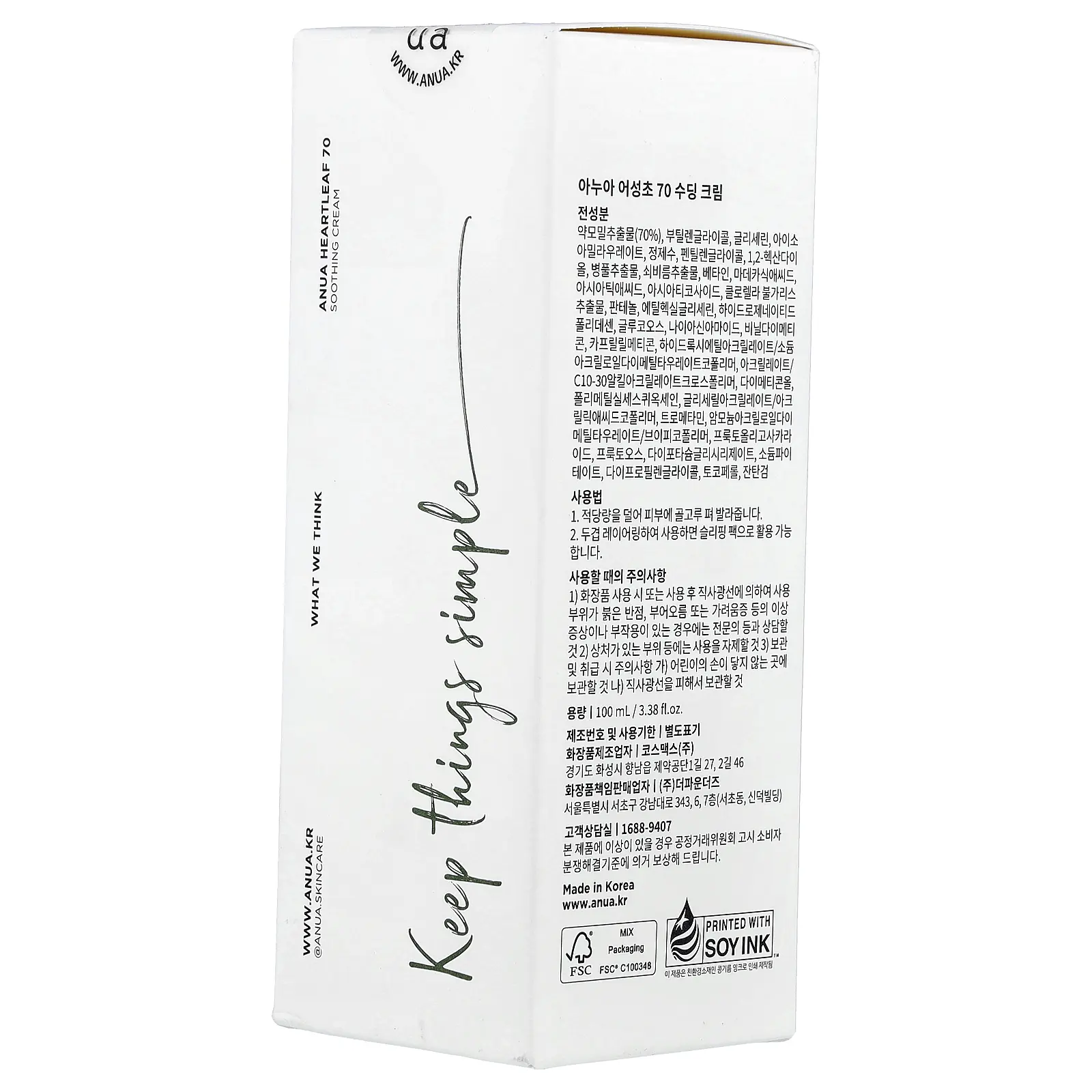 5. Anua Heartleaf 70% Soothing Cream, 3.38 fl oz (100 ml)