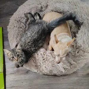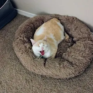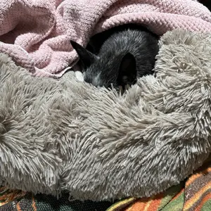 Riley loves his new donut bed. He is 6 pounds and has more than enough room in the size medium to invite two of his friends,very good quality and very soft and comfortable.