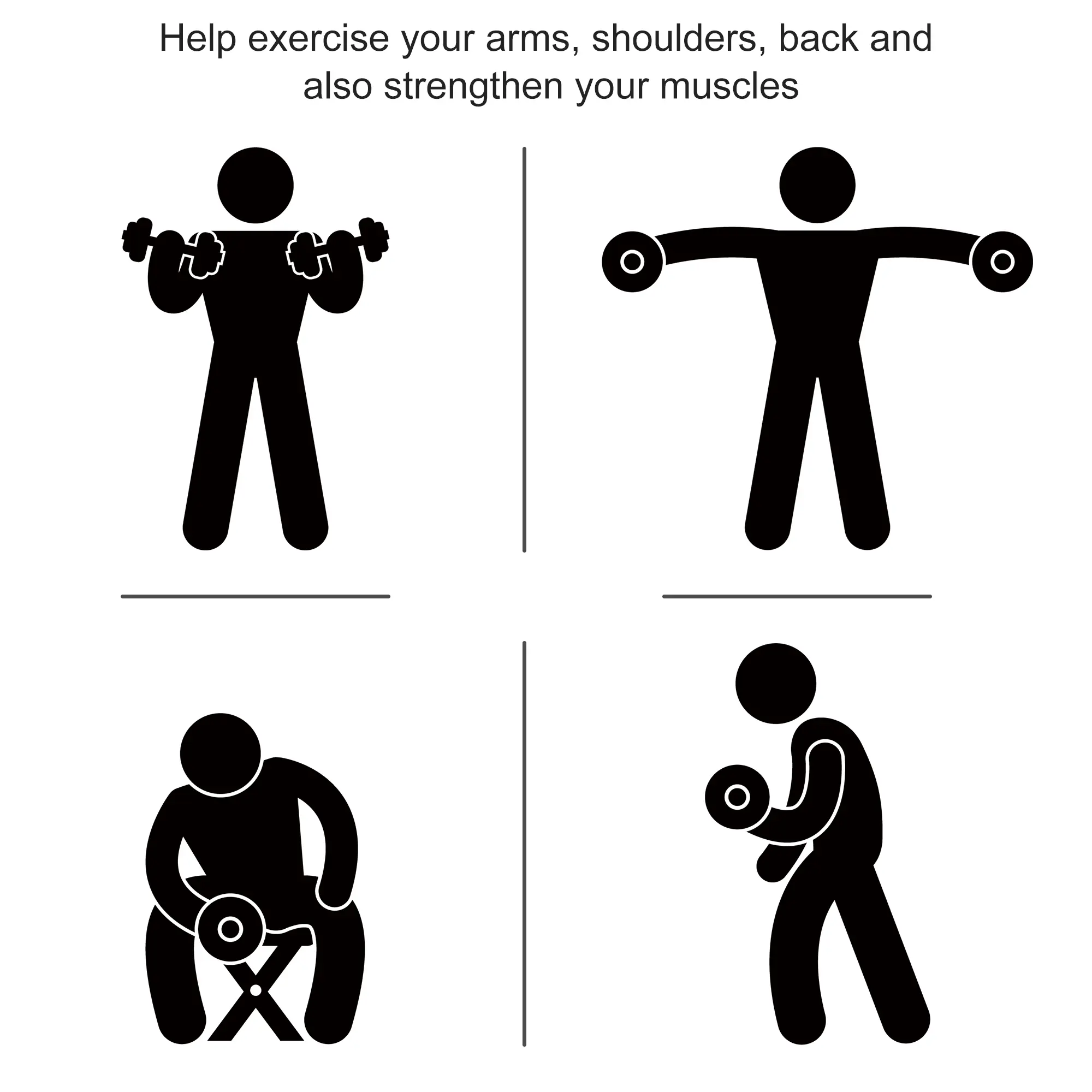 Dumbbells Set of Two: This dumbbells set can help increase your strength, giving you more muscle mass and benefiting your cardiorespiratory fitness and flexibility.Rubber Wrapped: The rubber dumbbell weights are durable and less prone to damaging floors. Nothing will chip off even after regular use.Ergonomic Handles: The weights dumbbells set's ergonomically curved handles are made to match the palm, offering better grip with textured non-slip surfaces. The metal materials cause less sweat than softer handles for more security in your clutch.Hexagonal Shape: The hexagonal shape prevents the dumb bells from rolling, keeping them right where you put them, even when rummaging in storage.Dumbbells Set Information: Overall Dimension: 4.5" L x 4" W x 11.25" H, Weight: 15 lbs. Per Dumbbell.