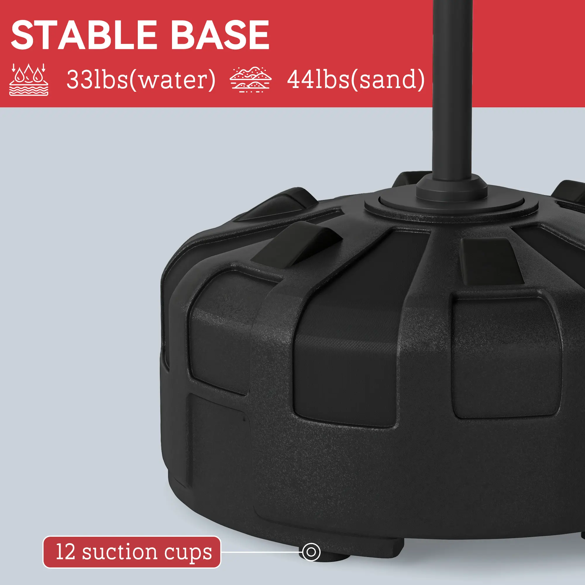 base holds 44 lbs (sand) or 33 lbs (water)