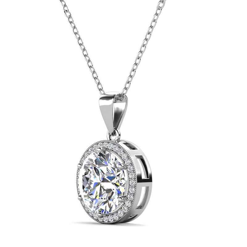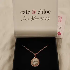 Very pretty and sparkly. Love the piece. The only thing that I would improve on is the chain. The design of the chain appears cheap compare to the pendant. A box chain or rope would be ideal.