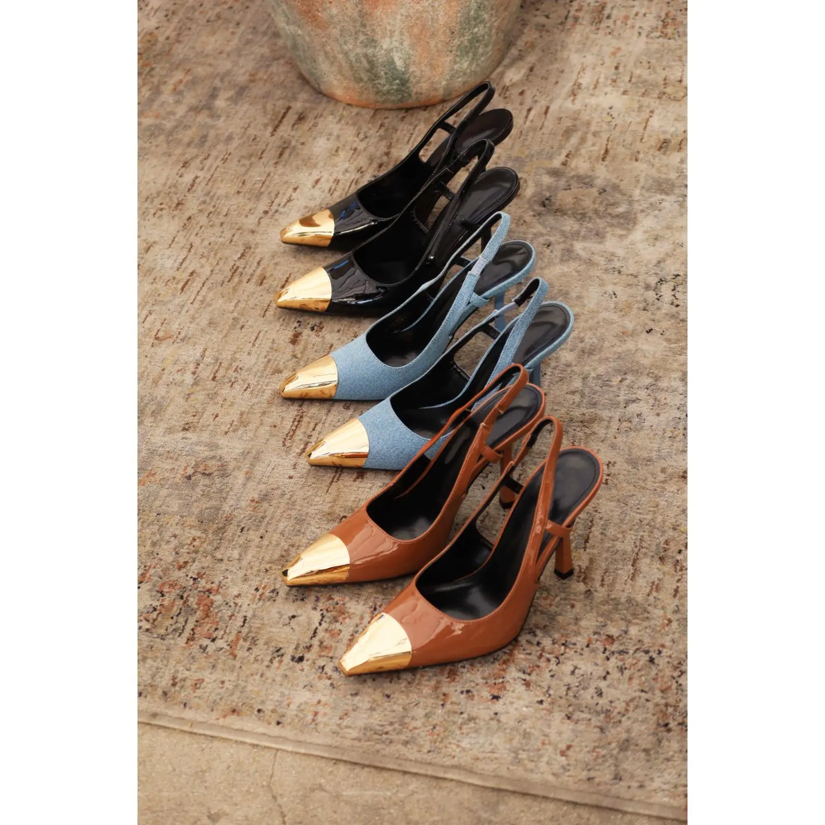 ·Gold-Tone Toe Cap Detailing