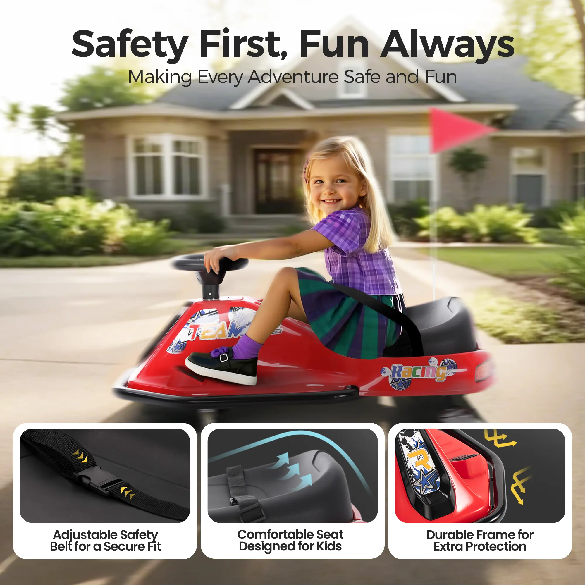 ·【Long-Lasting Battery & Extended Playtime】Features a 24V/7Ah rechargeable battery for up to 45 minutes of continuous drifting. Ideal for outdoor fun, with a battery indicator for easy monitoring.