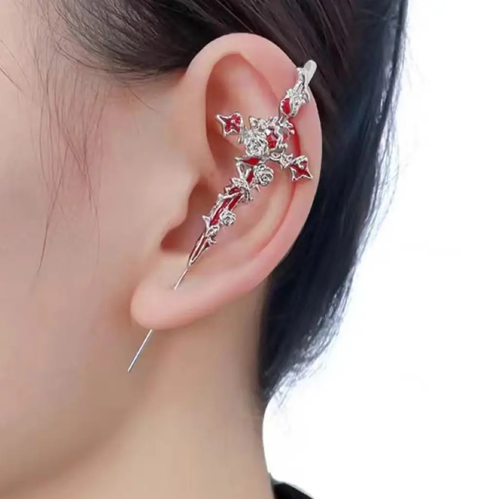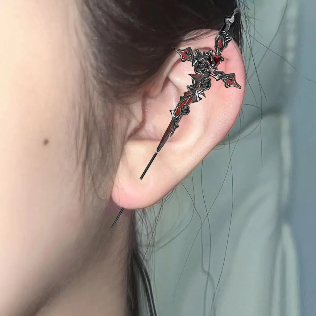 Crafted from alloy, these studs earrings feature an intricate thorn wrapped rose, showcasing exquisite craftsmanship and attention to detail.