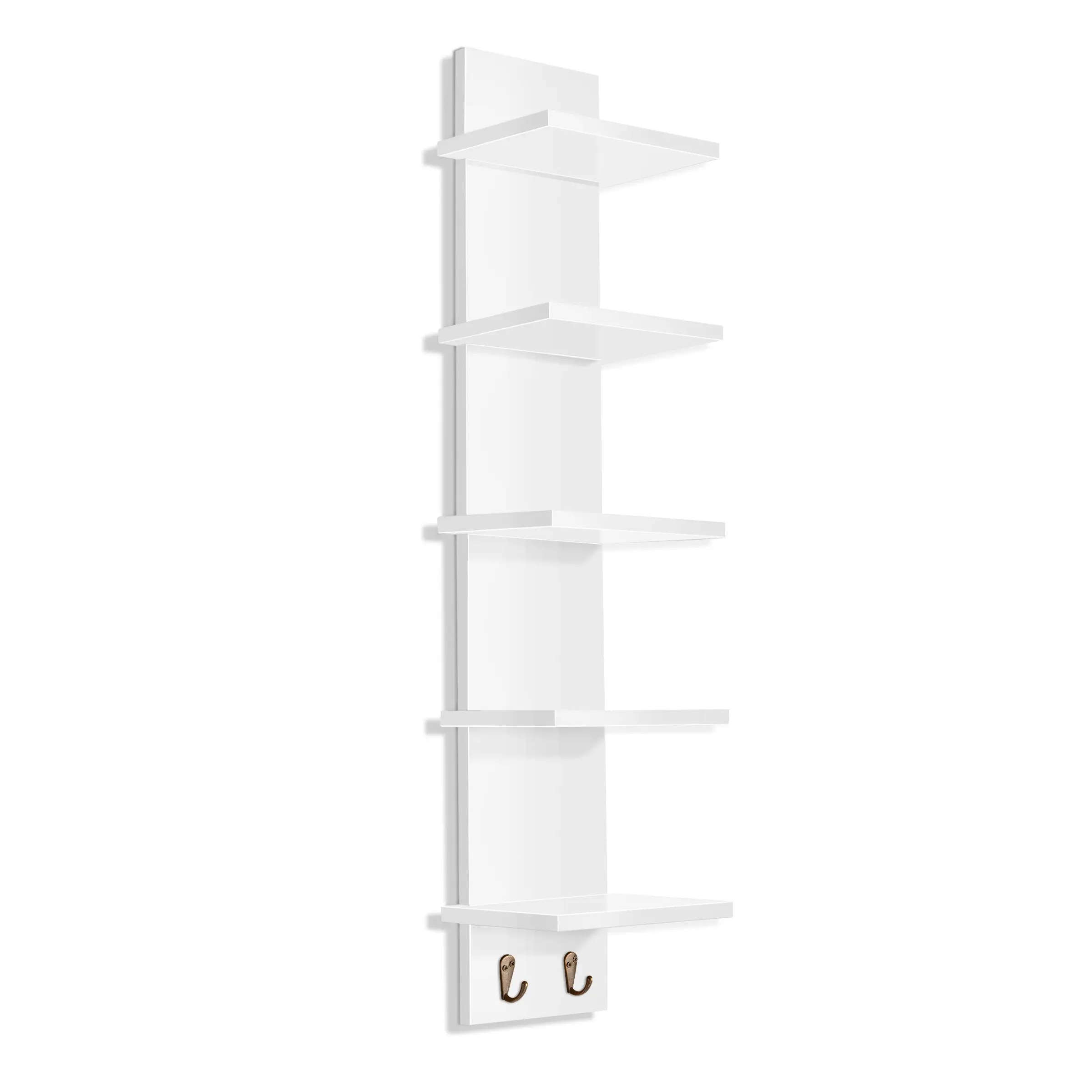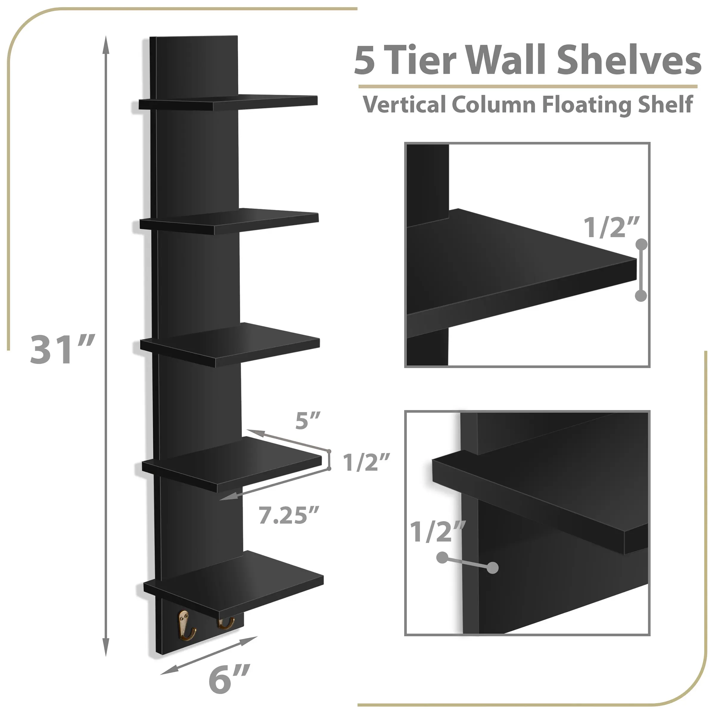 Enhance your home decor with the Sorbus 5 Tier Wall Shelf Unit, designed to maximize space and provide stylish storage solutions. This floating vertical shelf unit features five square shelves and two hooks, making it perfect for displaying books, keepsakes, and everyday essentials.