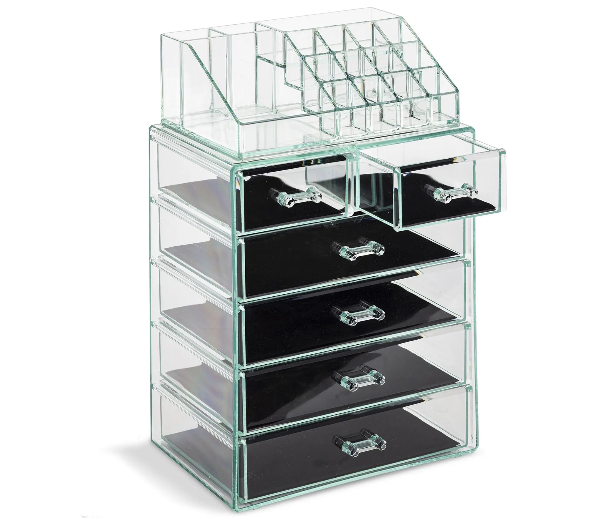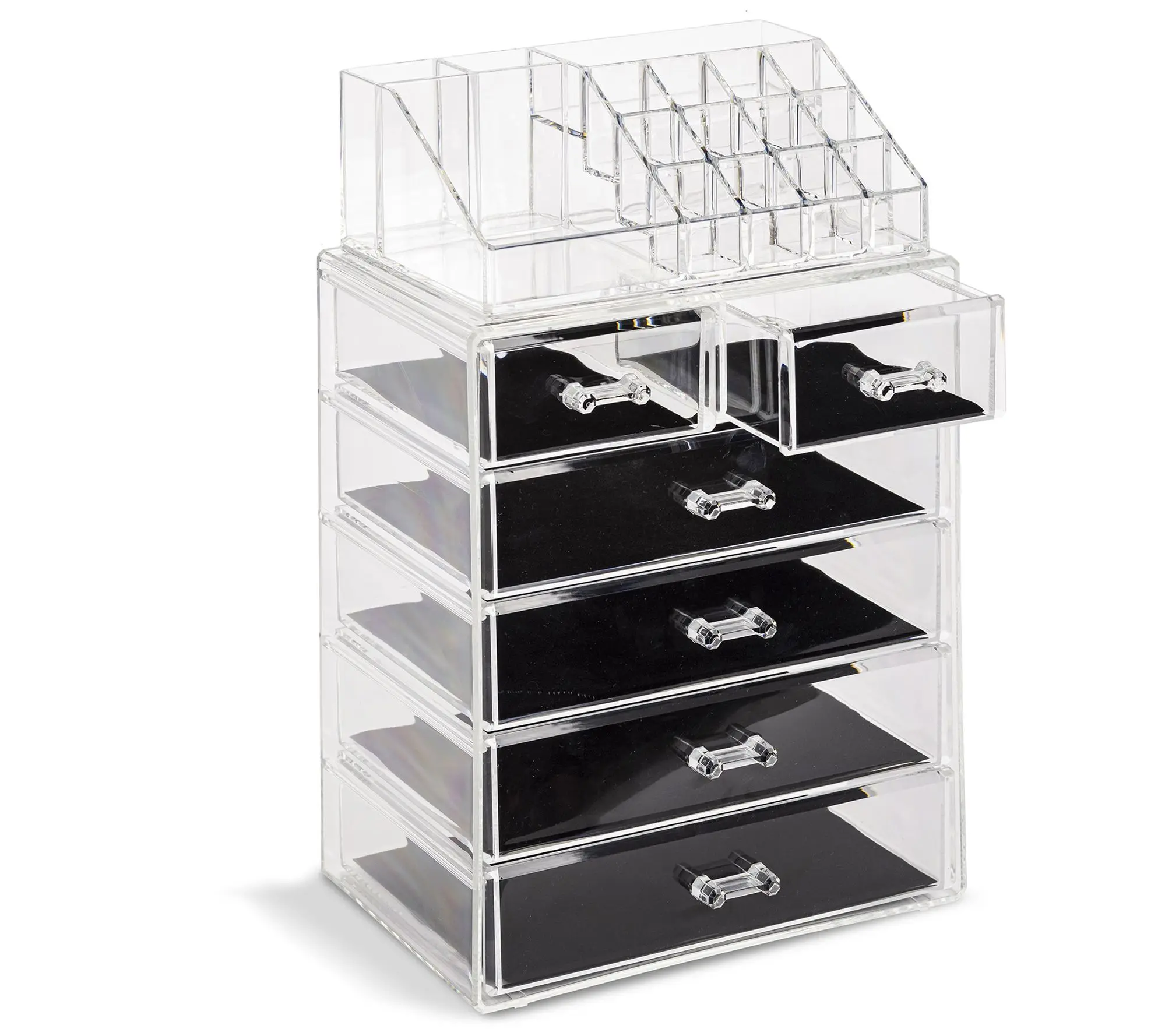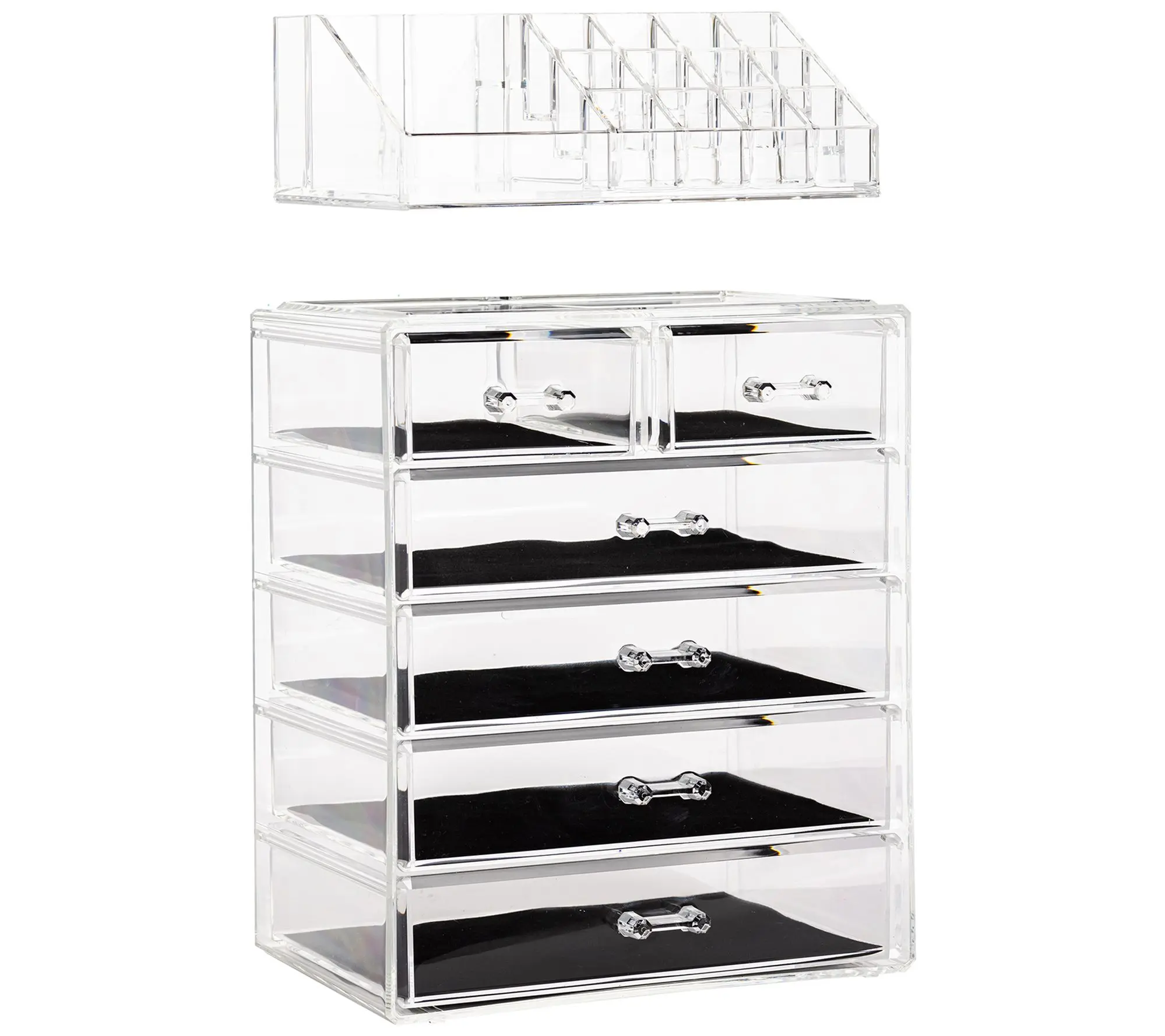 Store your cosmetics and jewelry in plain sight with this six-drawer clear storage case. From Sorbus.