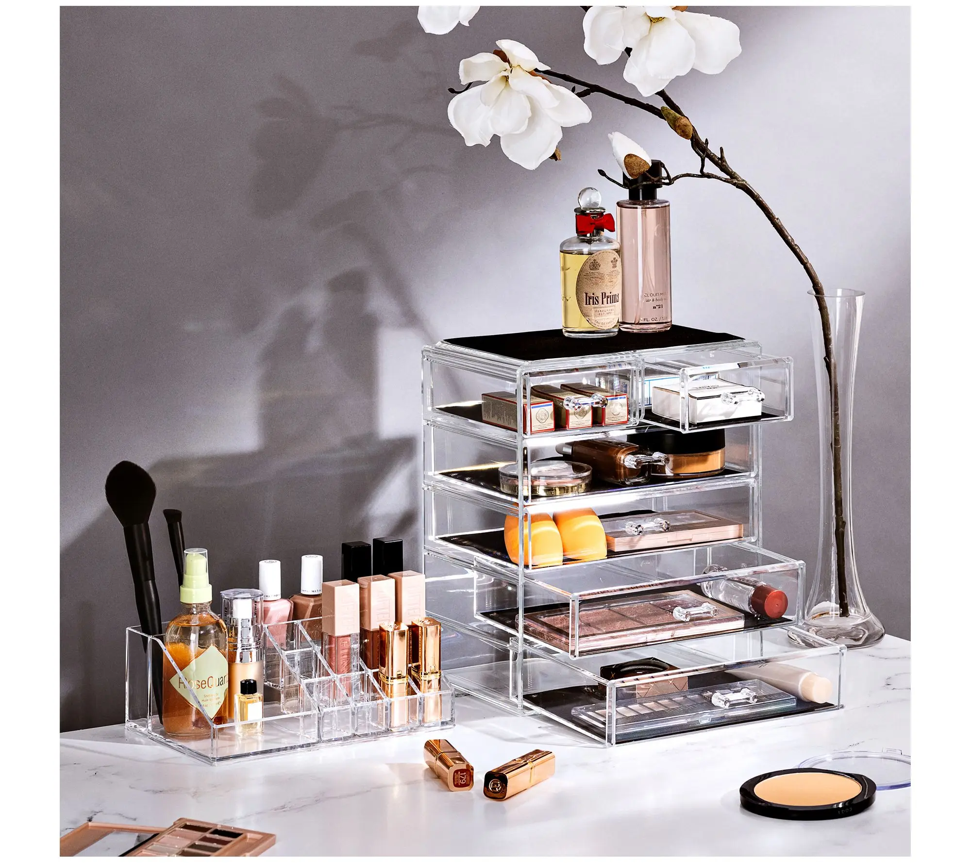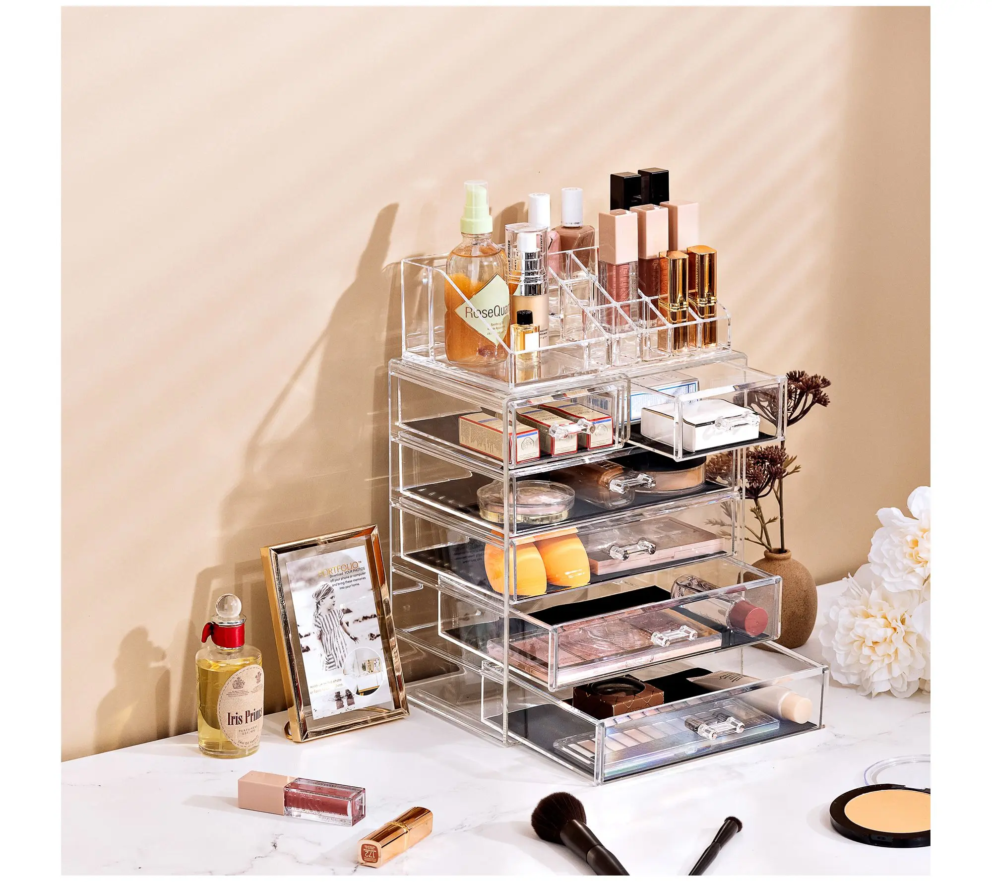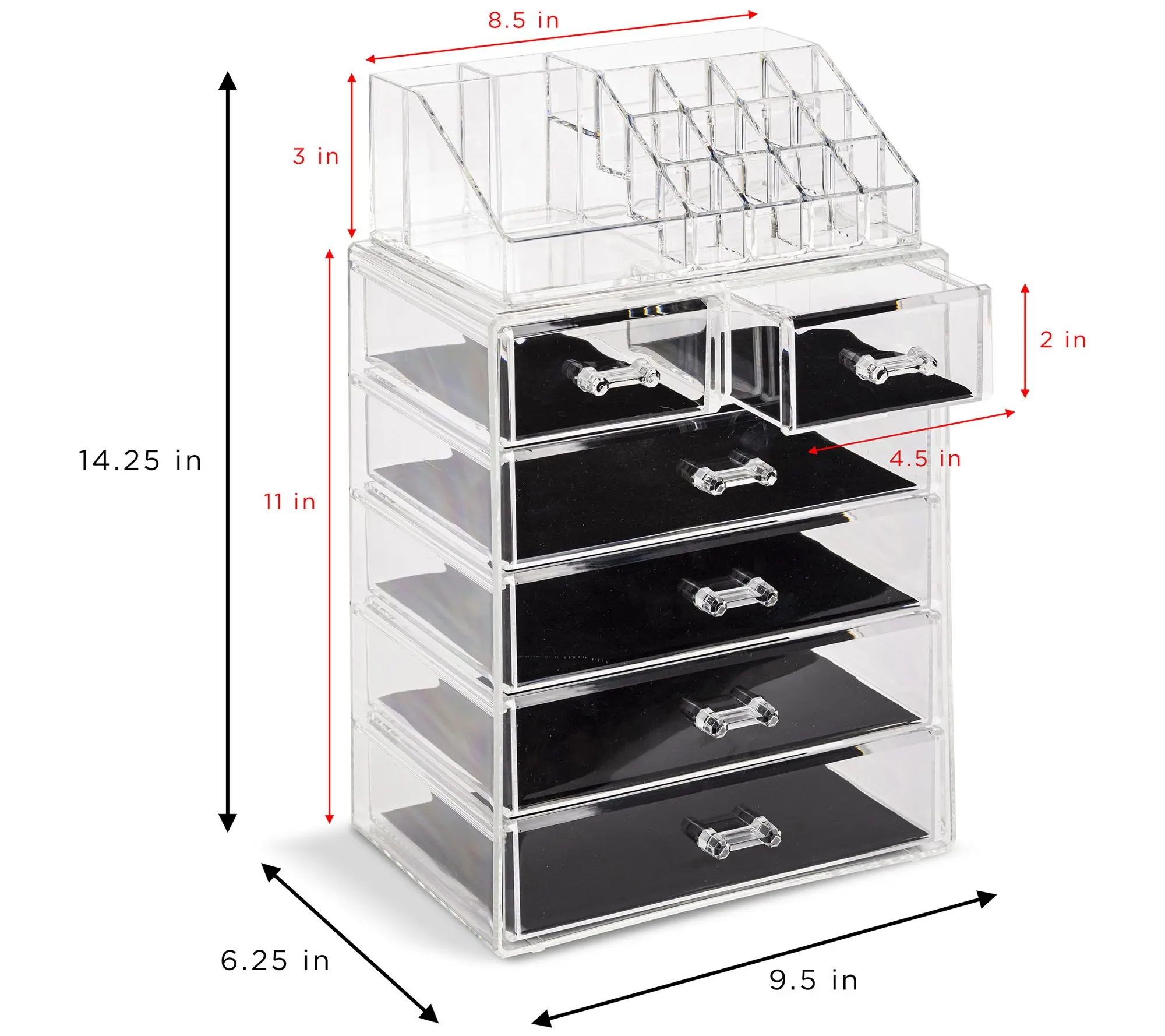 Store your cosmetics and jewelry in plain sight with this six-drawer clear storage case. From Sorbus.
